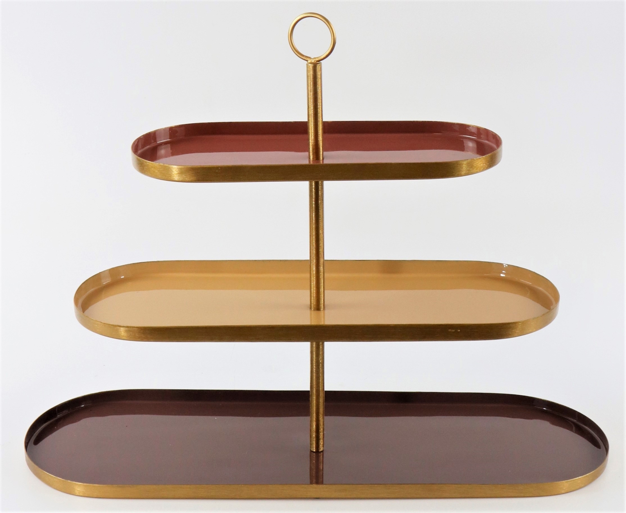 Découvrez l'élégance charmante de "ETAGERE DELUXE" - un bijou ovale à trois étages qui ne devrait manquer dans aucun environnement aménagé avec style. Conçue spécialement pour le commerce de détail stationnaire dans le domaine de l'habitat et du style de vie, cette étagère allie une esthétique intemporelle à une fonctionnalité pratique. Avec une hauteur impressionnante d'environ 51 cm et une finition marron raffinée en métal robuste, c'est le choix idéal pour les détaillants qui souhaitent offrir à leurs clients non seulement la fonctionnalité, mais aussi une touche de luxe.