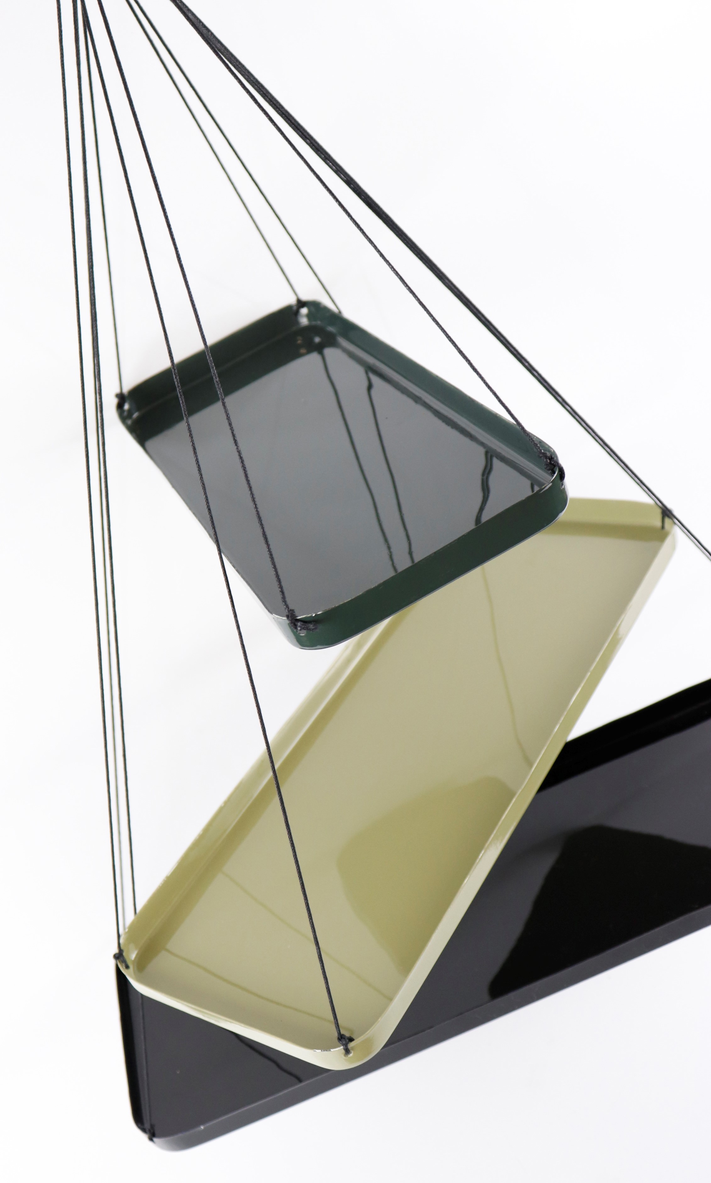Le set se compose de trois plateaux suspendus dans les couleurs tendance vert et noir, dont les dimensions vont de 51,5 cm, 41 cm à 32 cm. Fabriqués en métal robuste, les plateaux garantissent une utilisation durable et une stabilité permettant de maintenir en toute sécurité aussi bien des objets légers que lourds. Cette polyvalence fait des plateaux suspendus "Deluxe" le choix idéal pour la présentation d'une grande variété de produits - qu'il s'agisse de décoration, d'accessoires ou d'autres produits de style de vie.
