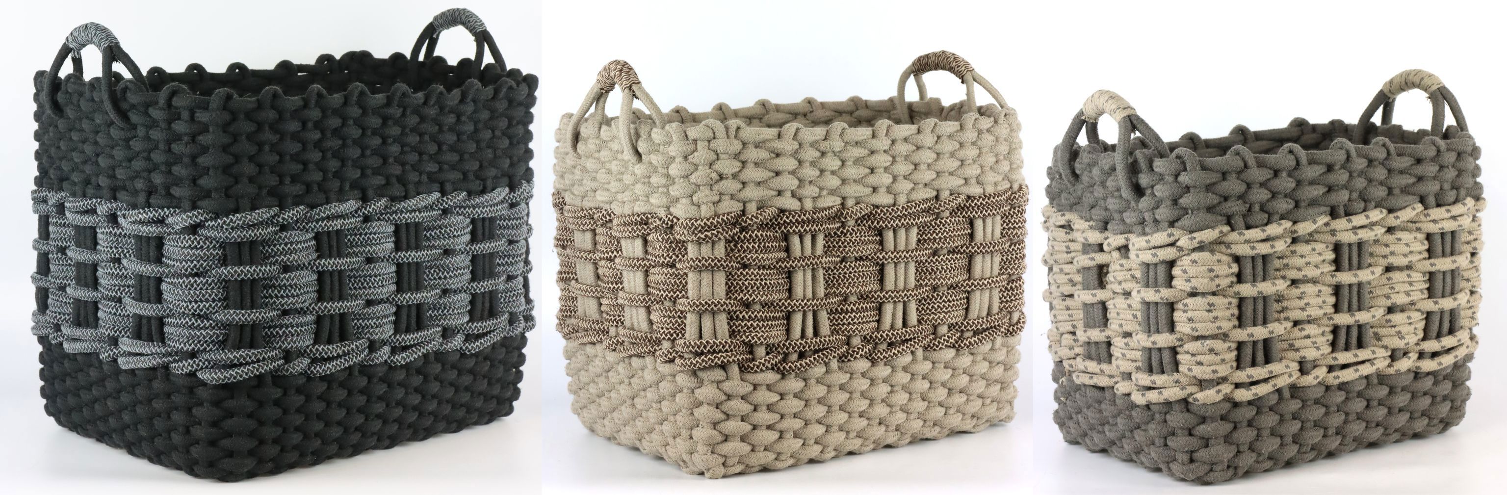 - **Set de trois pièces** : Trois paniers dans des tons marron et noir coordonnés.