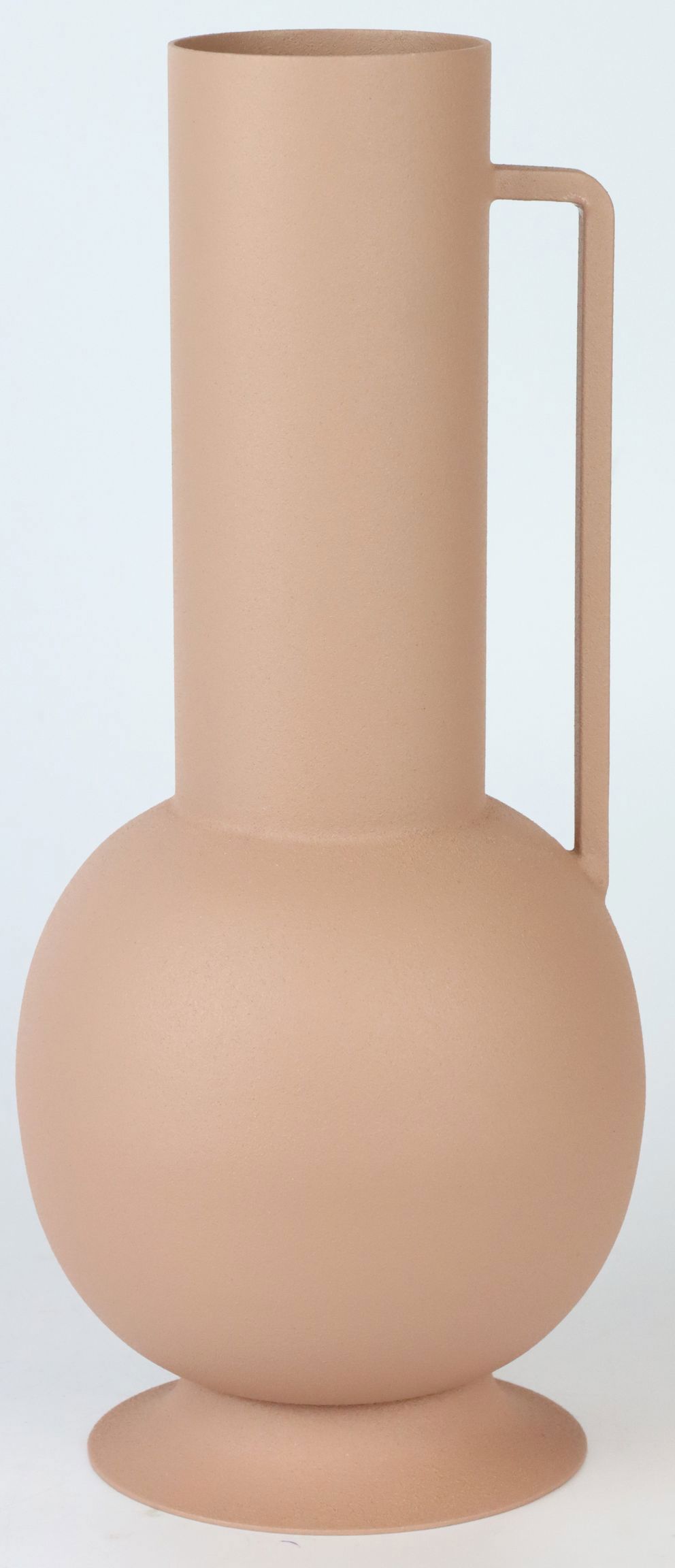 Avec une hauteur imposante d'environ 29,5 cm, ce vase remarquablement travaillé attire immédiatement le regard. La chaude teinte brun clair du fer dans lequel il est fabriqué dégage une esthétique apaisante qui convient parfaitement à toute collection automne/hiver.