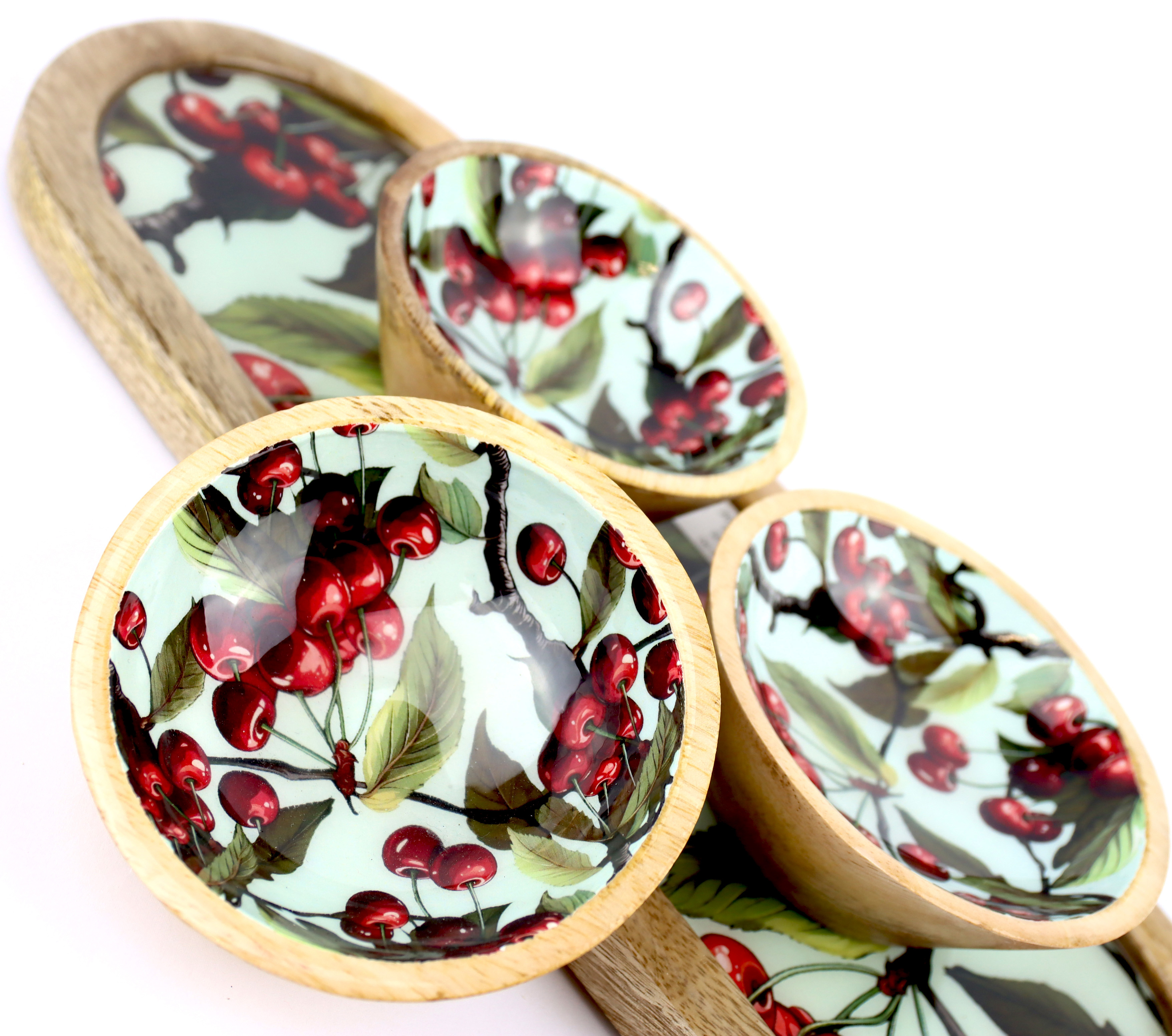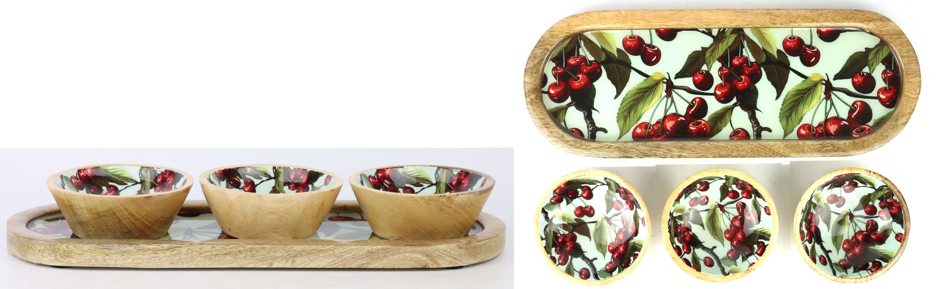 L'ensemble de coupes se distingue par son charmant motif de cerises - un design à la fois esthétique et intemporel. Chaque bol est soigneusement conçu pour briller aussi bien seul qu'en combinaison avec les autres pièces de l'ensemble. Que ce soit pour présenter des salades, des fruits ou des snacks, la polyvalence de cet ensemble de bols en fait un produit idéal qui ne devrait manquer dans aucun foyer.