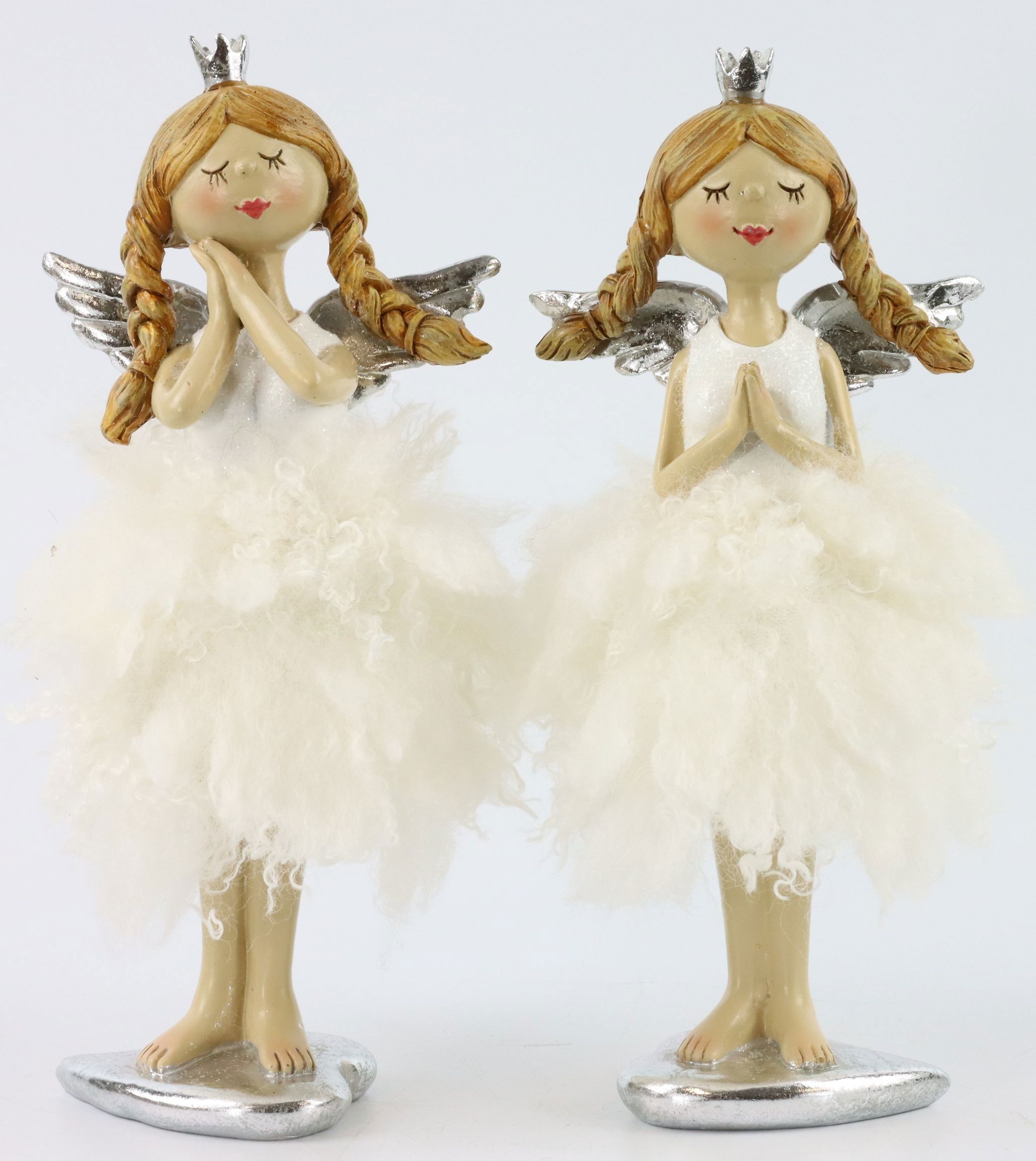Les figurines d'anges "Angélique" attirent l'attention par leur esthétique sophistiquée. Fabriqués en polyrésine de haute qualité, ces éléments de décoration convainquent par leur excellente finition et leur aspect élégant. Chaque figurine d'ange a une taille d'environ 21,5 cm, parfaite pour briller sur une commode, un sideboard ou comme décoration de table.