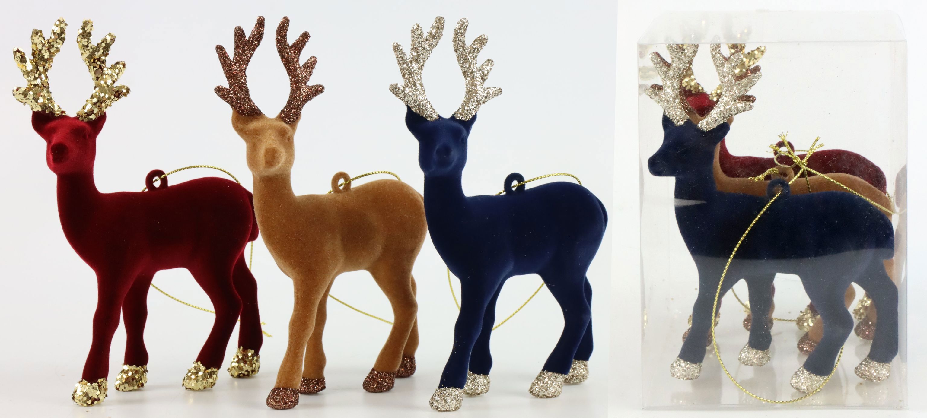 Keywords : décoration de Noël, figurines de rennes, bois dorés, cadeau de Noël, set de 3 pièces, rennes en plastique, détaillant B2B, collection de Noël, accessoires festifs, habitat et style de vie.