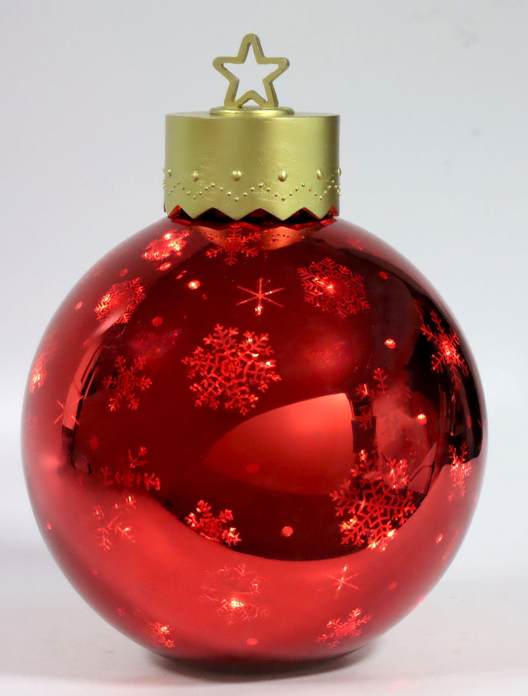 La boule lumineuse LED "Snowflake" est fabriquée en verre de haute qualité et en plastique robuste, ce qui souligne sa longévité et sa résistance. La boule artistiquement décorée en rouge est ornée de flocons de neige scintillants qui créent une sensation de confort et d'accueil dans n'importe quelle ambiance. Les LED intégrées fournissent une lumière chaude et atmosphérique qui met remarquablement en valeur votre vitrine et crée une atmosphère chaleureuse qui attire les acheteurs.