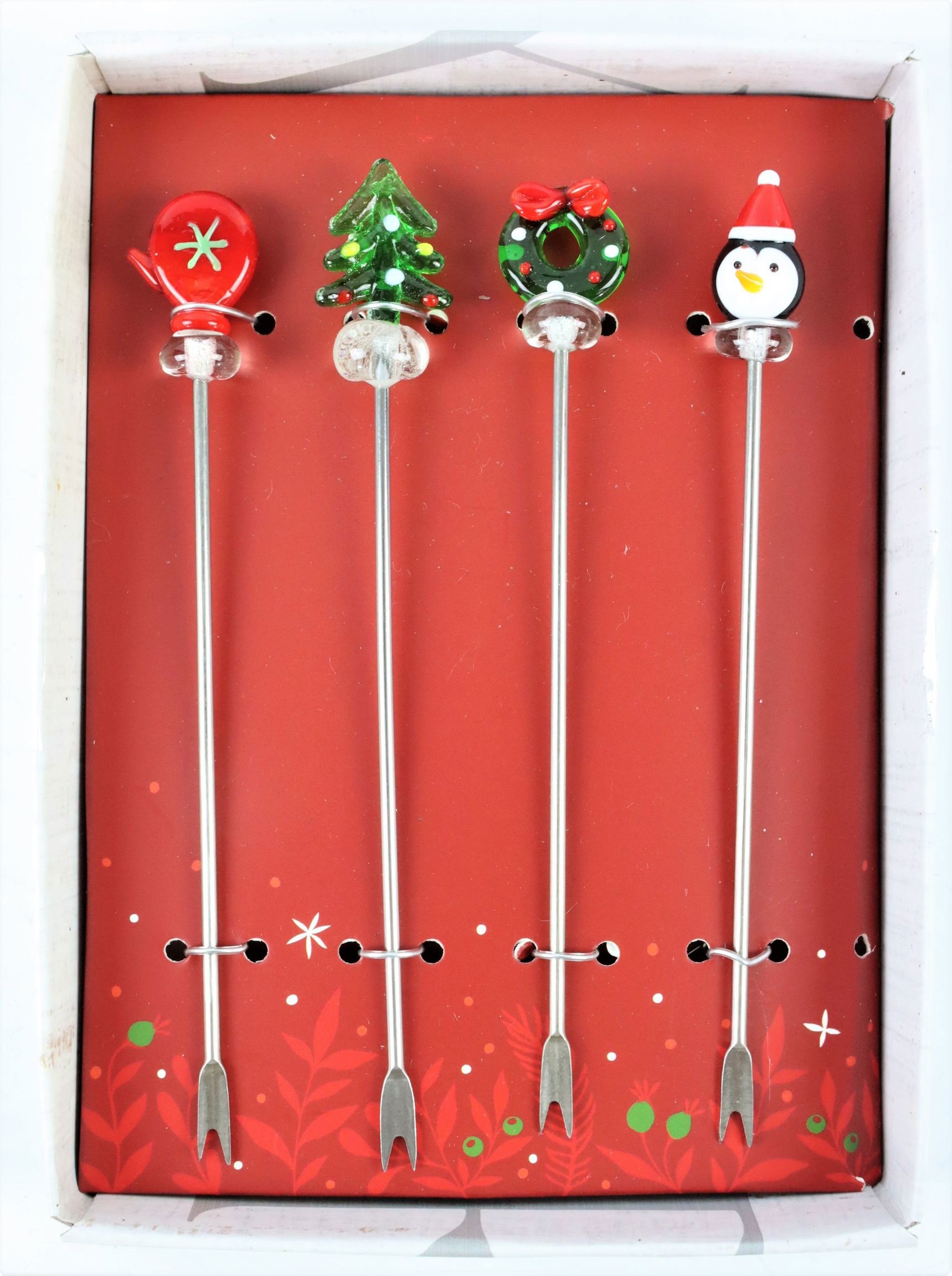 1. Ensemble de 4 piques de Noël, en fer et en verre, d'une taille d'environ 12,5 cm.