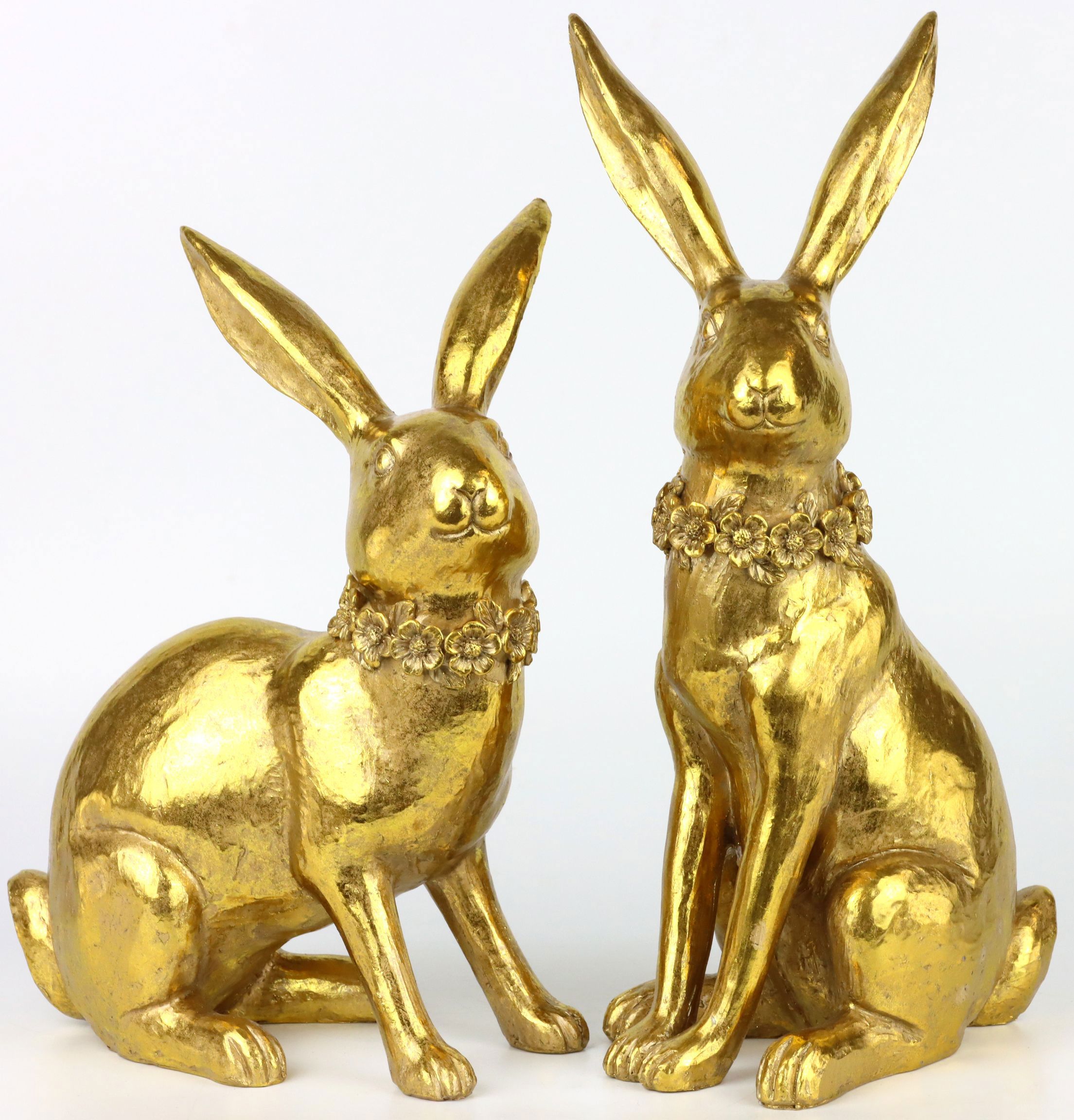 D'une hauteur d'environ 28 cm, les lapins confèrent à toute décoration une présence imposante et se combinent à merveille avec d'autres accessoires. Le design doré reflète la lumière et attire magiquement les regards, de sorte que vos clients ne peuvent pas manquer ces fascinantes figures. Que ce soit sur un présentoir de vitrine, sur une table de salon ou comme élément central d'une décoration à thème, ce set de lièvres apporte une touche de noblesse et diffuse une atmosphère festive de Pâques.