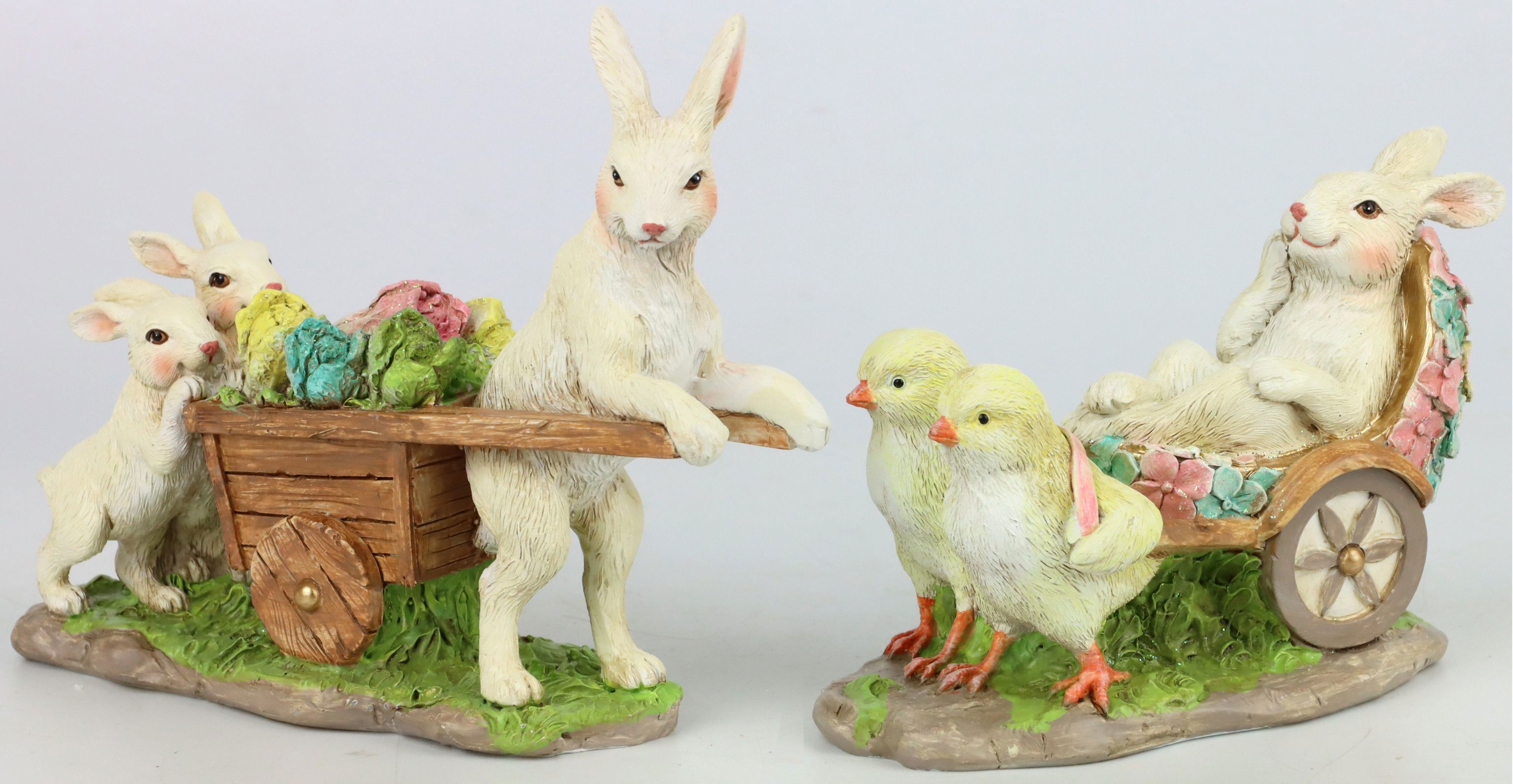 - Mots-clés optimisés SEO pour une meilleure visibilité en ligne : décoration de Pâques, set de figurines de lapin, tendance de l'habitat.