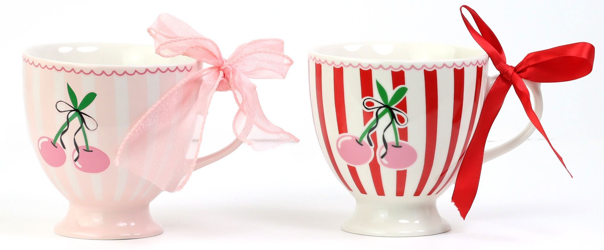 - Set de 2 tasses à anse en porcelaine avec design "Cherry Charm
