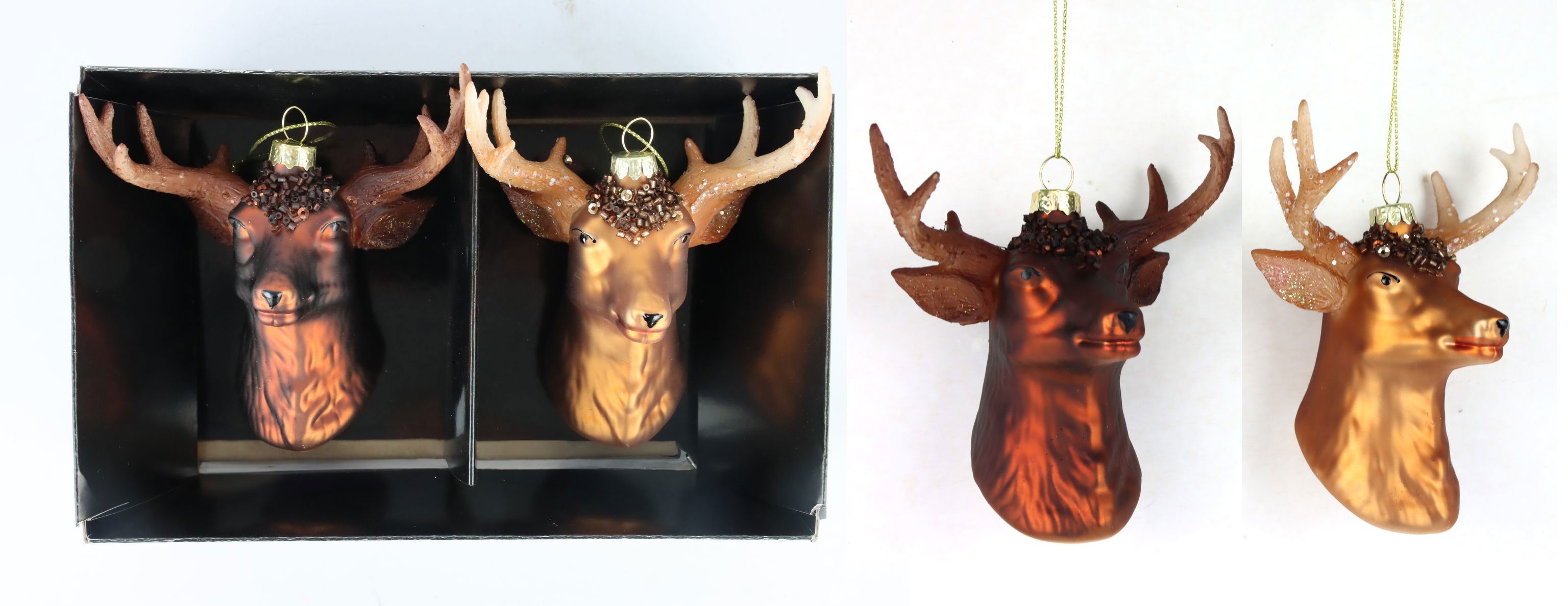 **Descrizione del prodotto: Gioielli in vetro "Testa di cervo" in set da 2 - Eleganza in vetro per un ambiente festivo**