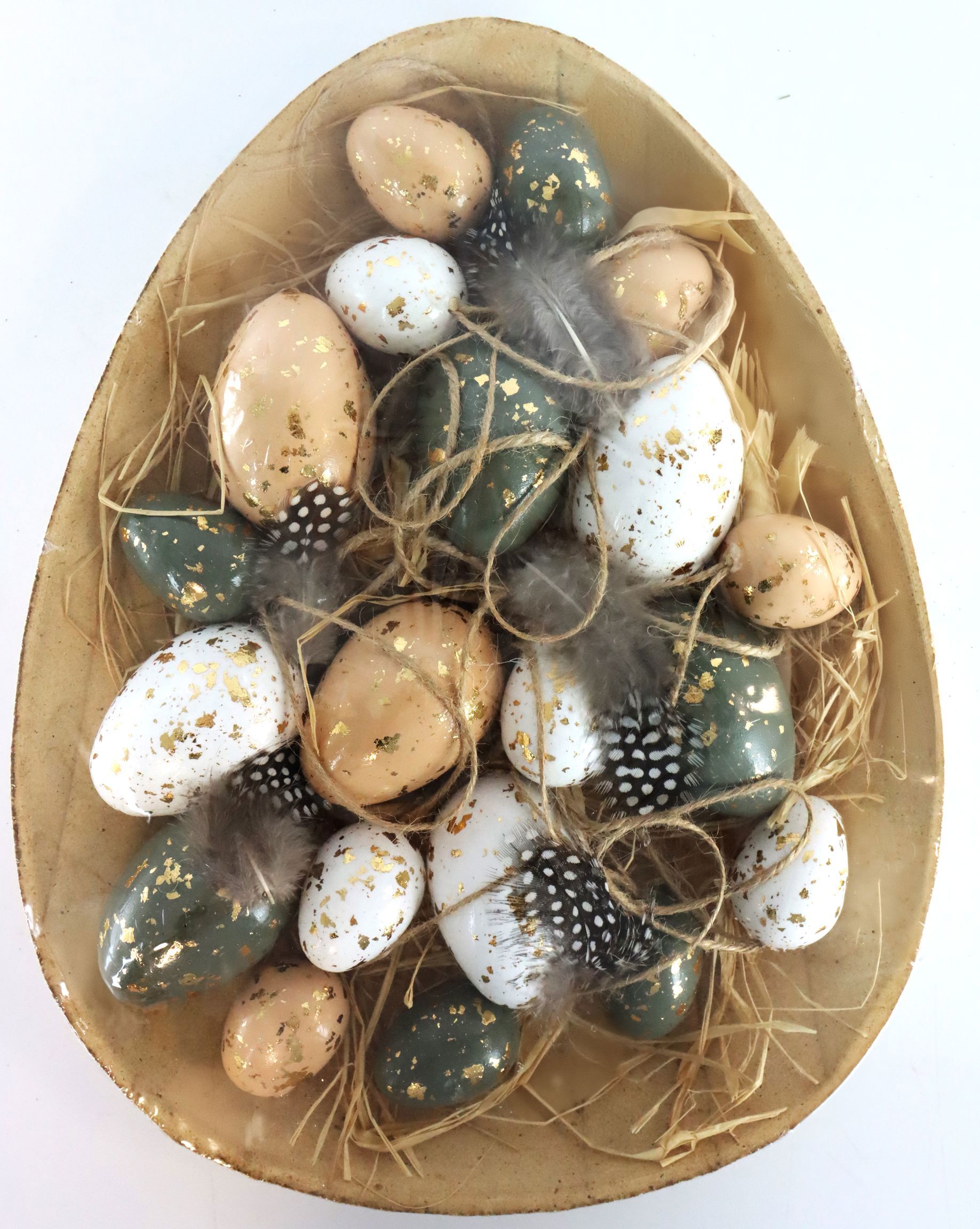 Ideale per la vendita al dettaglio, la "Ciotola con uova naturali" si rivolge ai clienti che apprezzano l'estetica, la sostenibilità e la decorazione di alta qualità. La combinazione di materiali dall'aspetto naturale e di un design senza tempo offre flessibilità nella decorazione e garantisce che questa ciotola possa essere utilizzata anche come elegante accessorio per la casa dopo la stagione pasquale.