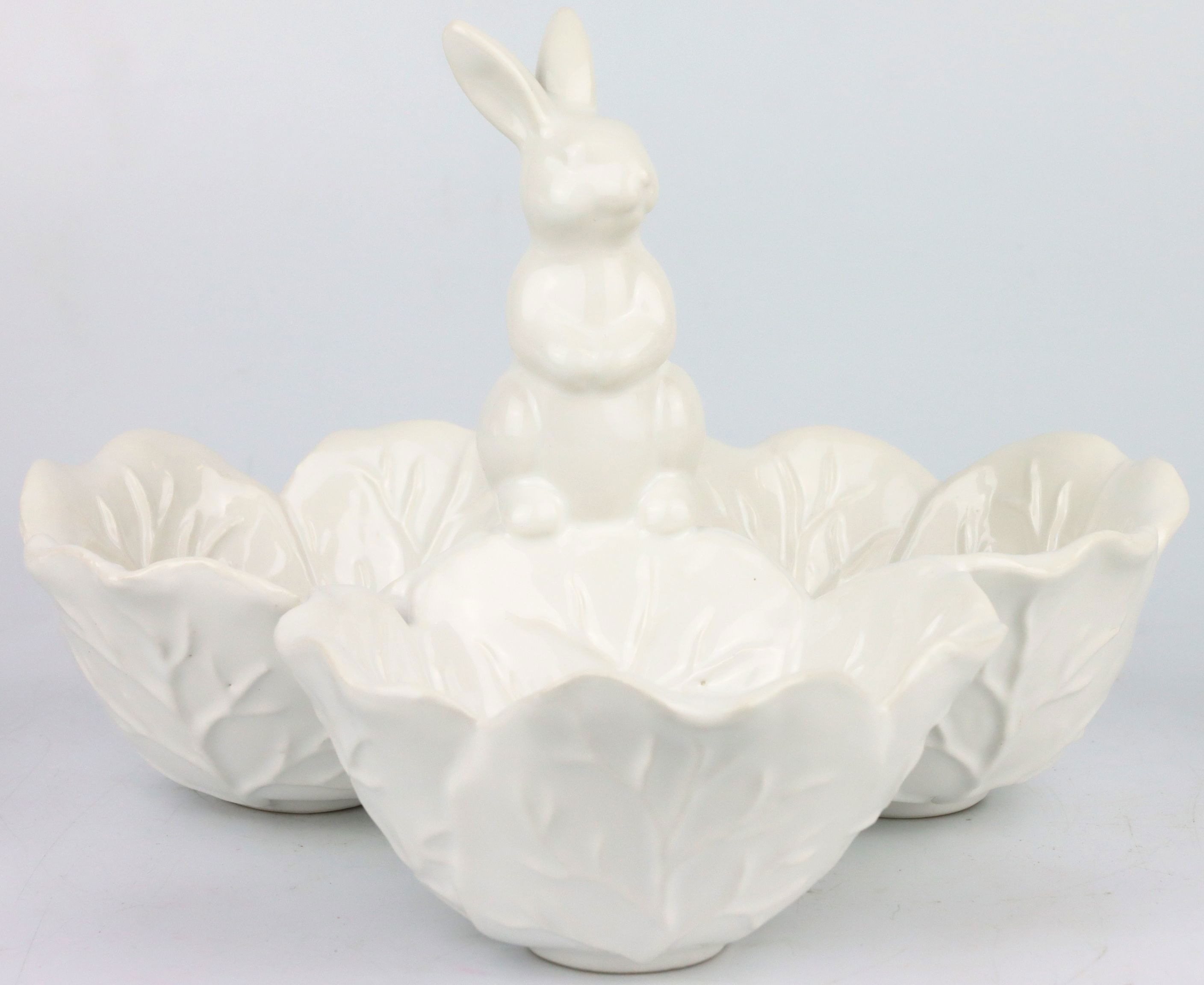 **Trio di ciotole "White Cabbage" con motivo di coniglietto in ceramica - La decorazione pasquale perfetta per la vendita al dettaglio**
