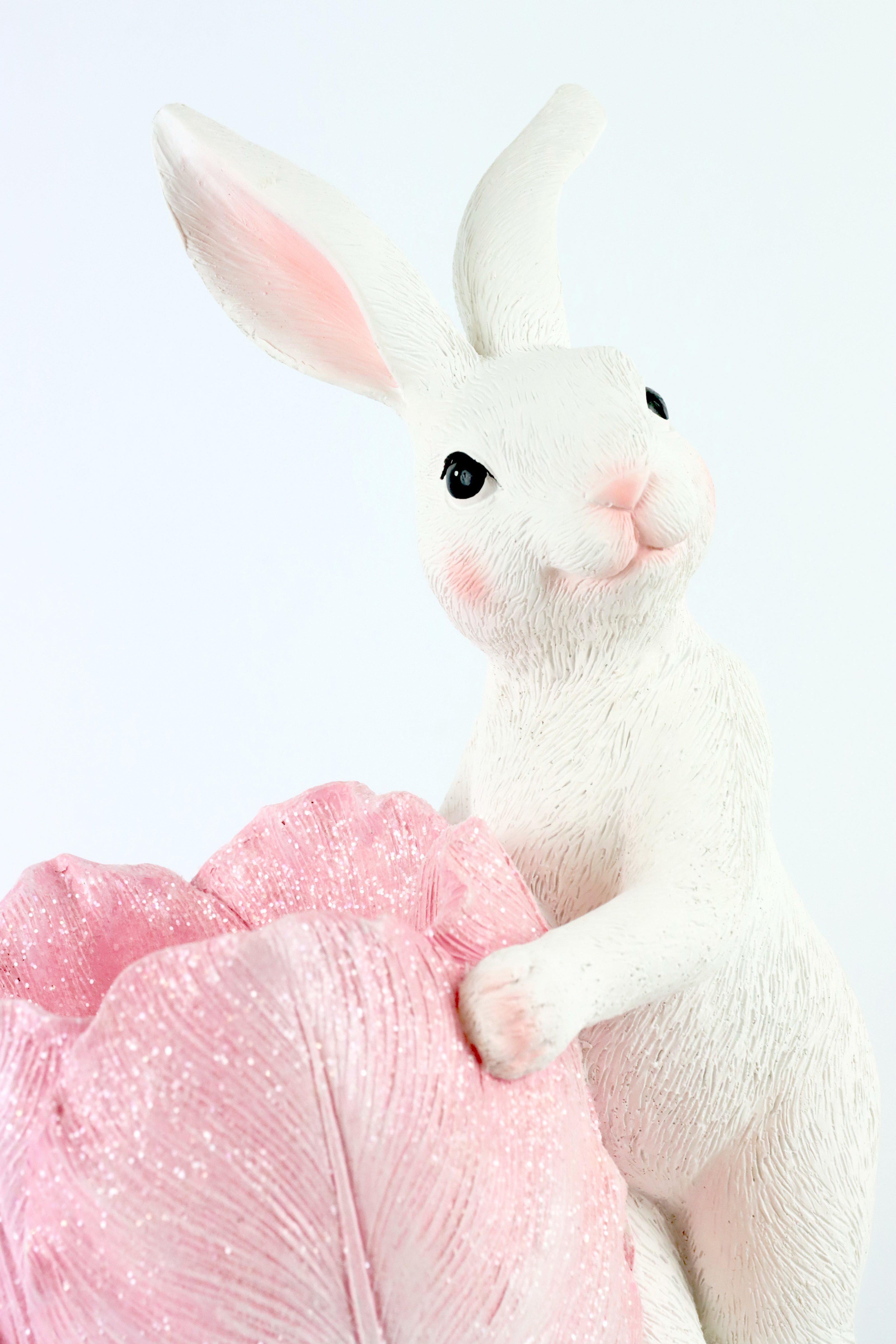 Grazie ai materiali in poliresina, il coniglietto maggiordomo è particolarmente resistente e stabile, mentre i dettagli intricati e gli accattivanti motivi floreali creano un'allegra atmosfera pasquale. Lo stile senza tempo del coniglietto maggiordomo si adatta perfettamente a diversi stili abitativi, dal classico al moderno, e offre ai vostri clienti l'opportunità perfetta di personalizzare le loro stanze.