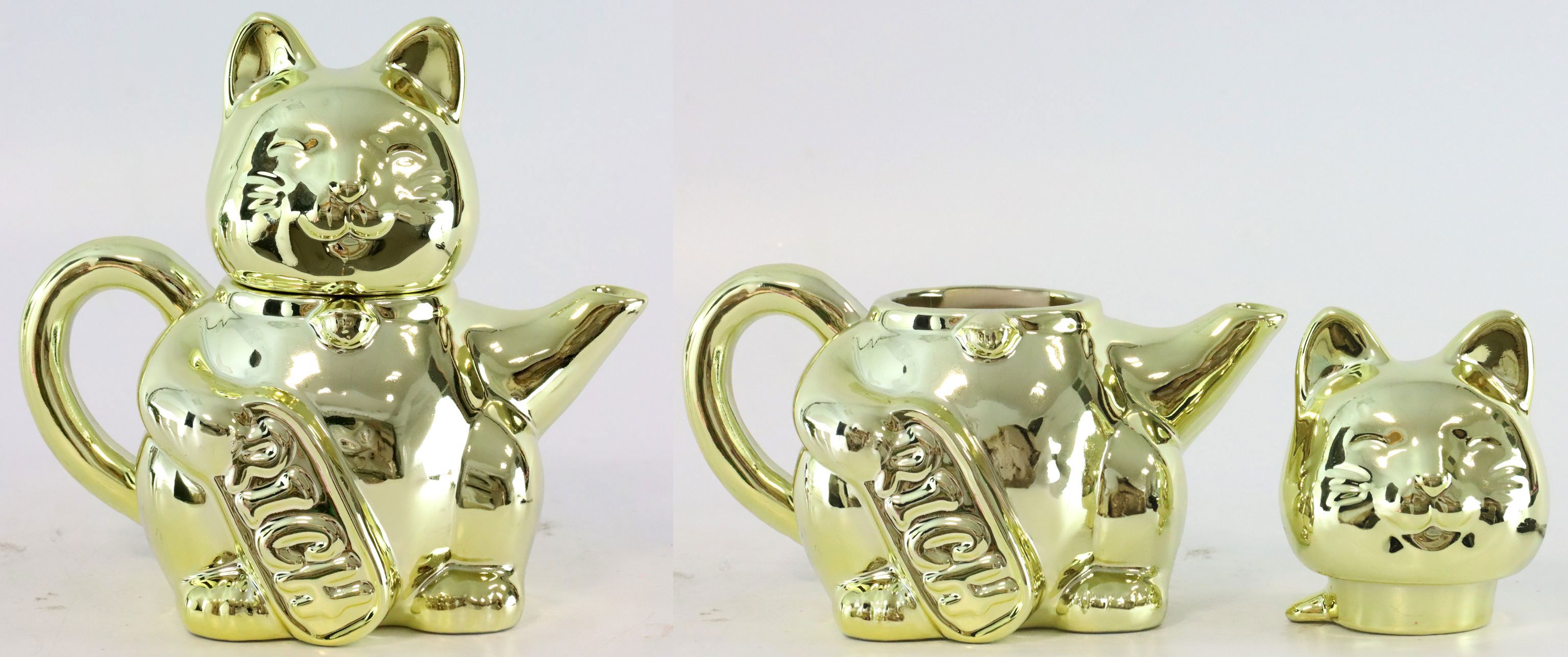 - Einzigartiges Design in Katzenform mit glänzendem Goldfinish