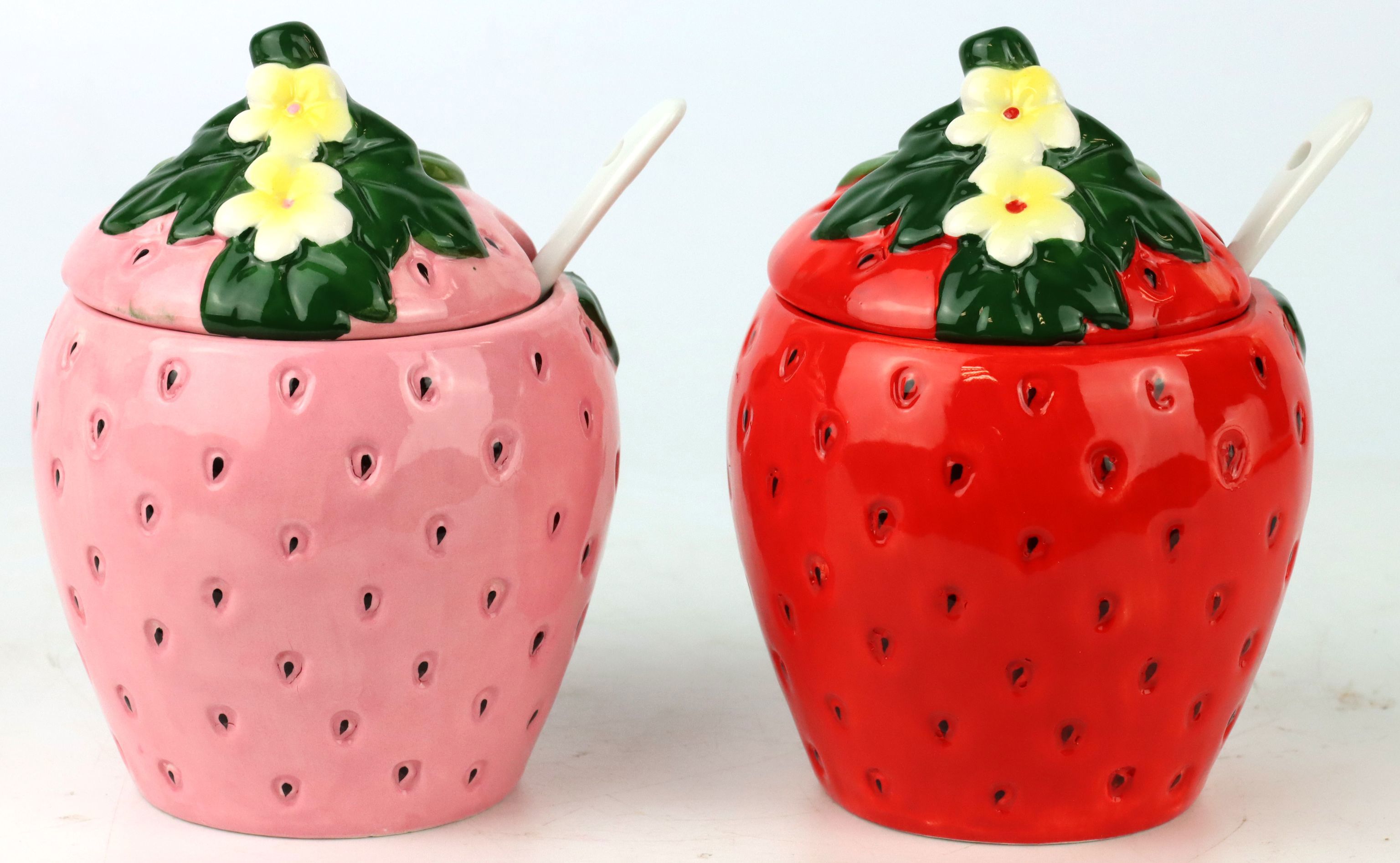 Entdecken Sie unser zauberhaftes Set von Deckeldosen im Erdbeerdesign, bestehend aus zwei hochwertigen Keramikdosen, die Ihrem Sortiment im stationären Einzelhandel ein frisches Highlight verleihen. Diese einzigartigen Keramikdosen, mit der Artikelnummer 4721 und der liebevollen Bezeichnung "DECKELDOSEN M.LÖF. 'STRAWBERRY' S/2", sind die perfekte Ergänzung für Ihr Wohn- und Lifestyle-Angebot im Frühjahr und Sommer. Mit ihrem ansprechenden Erdbeermotiv ziehen sie die Blicke Ihrer Kunden an und verleihen jedem Raum eine individuelle Note.