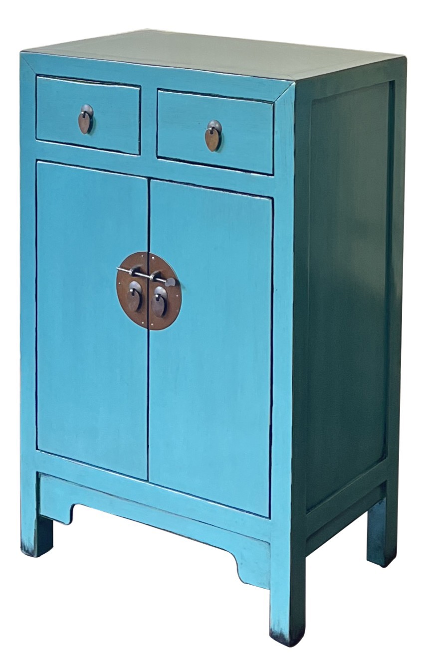 Der zeitlose asiatische Stil der Kommode "NEO ASIA" bringt einen Hauch von Exotik in jedes Interior. Das behutsam verarbeitete Recyclingholz verleiht der Kommode nicht nur ihren einzigartigen Charme, sondern steht auch für Nachhaltigkeit und Umweltbewusstsein, was in unserer heutigen Zeit immer mehr an Bedeutung gewinnt. Die blaue Farbe ist dabei nicht nur ein optischer Hingucker, sondern lässt sich hervorragend mit verschiedenen Einrichtungsstilen kombinieren, sei es modern, vintage oder klassisch.