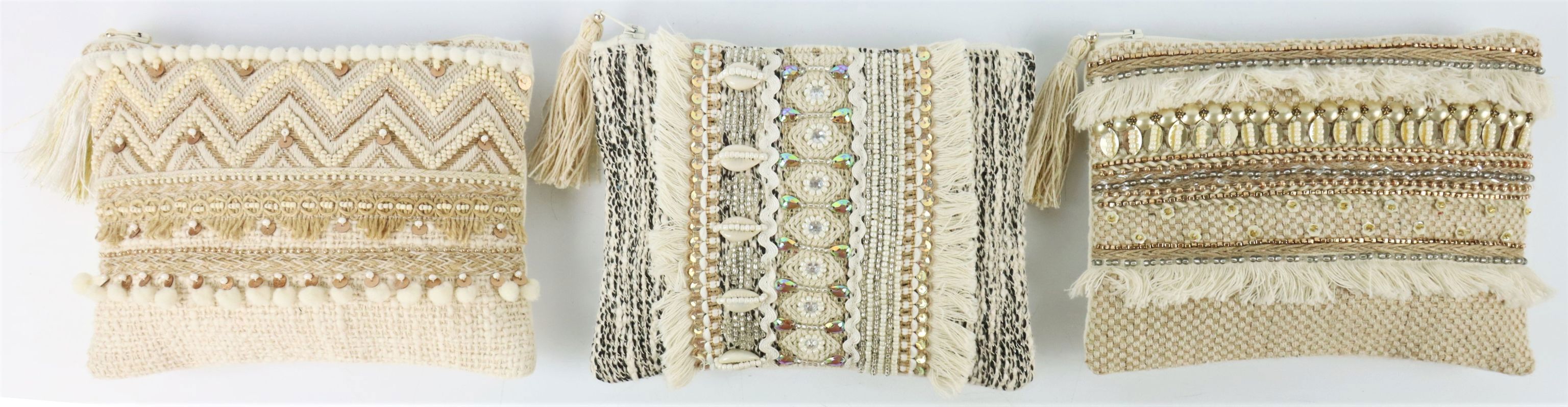 Jedes Täschchen ist sorgfältig aus hochwertigen, natürlichen Baumwollstoffen gefertigt und mit kunstvollen Kunstperlen verziert, die einen feinen Akzent setzen. Mit Maßen von 15,2 x 20,3 cm bieten die Täschchen genügend Platz für die wichtigsten Dinge des Alltags – seien es Kosmetikartikel, Schreibwaren oder kleine Accessoires. Die robusten Materialien garantieren nicht nur Langlebigkeit, sondern auch eine komfortable Handhabung und Pflege.