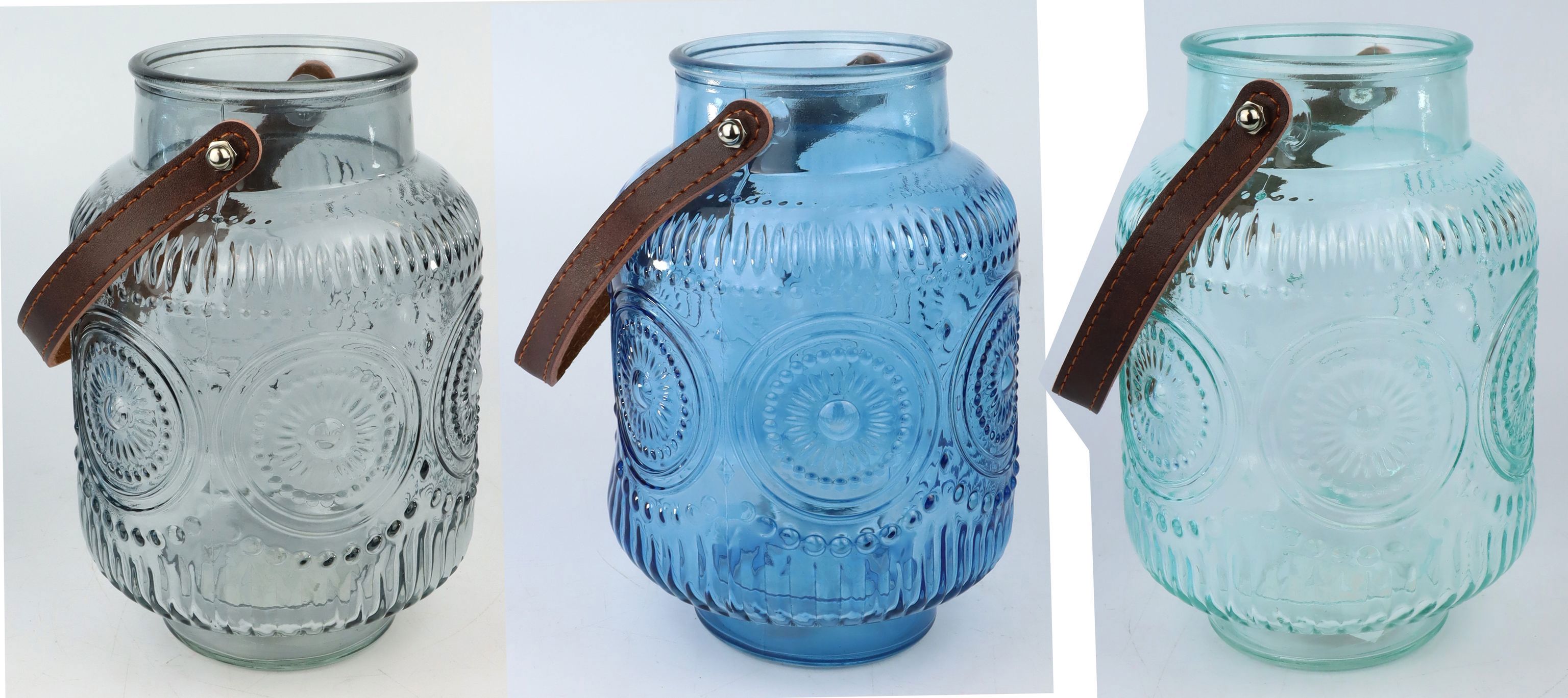 - Exklusives 3-teiliges Laternen-Set aus Glas in verschiedenen Blautönen