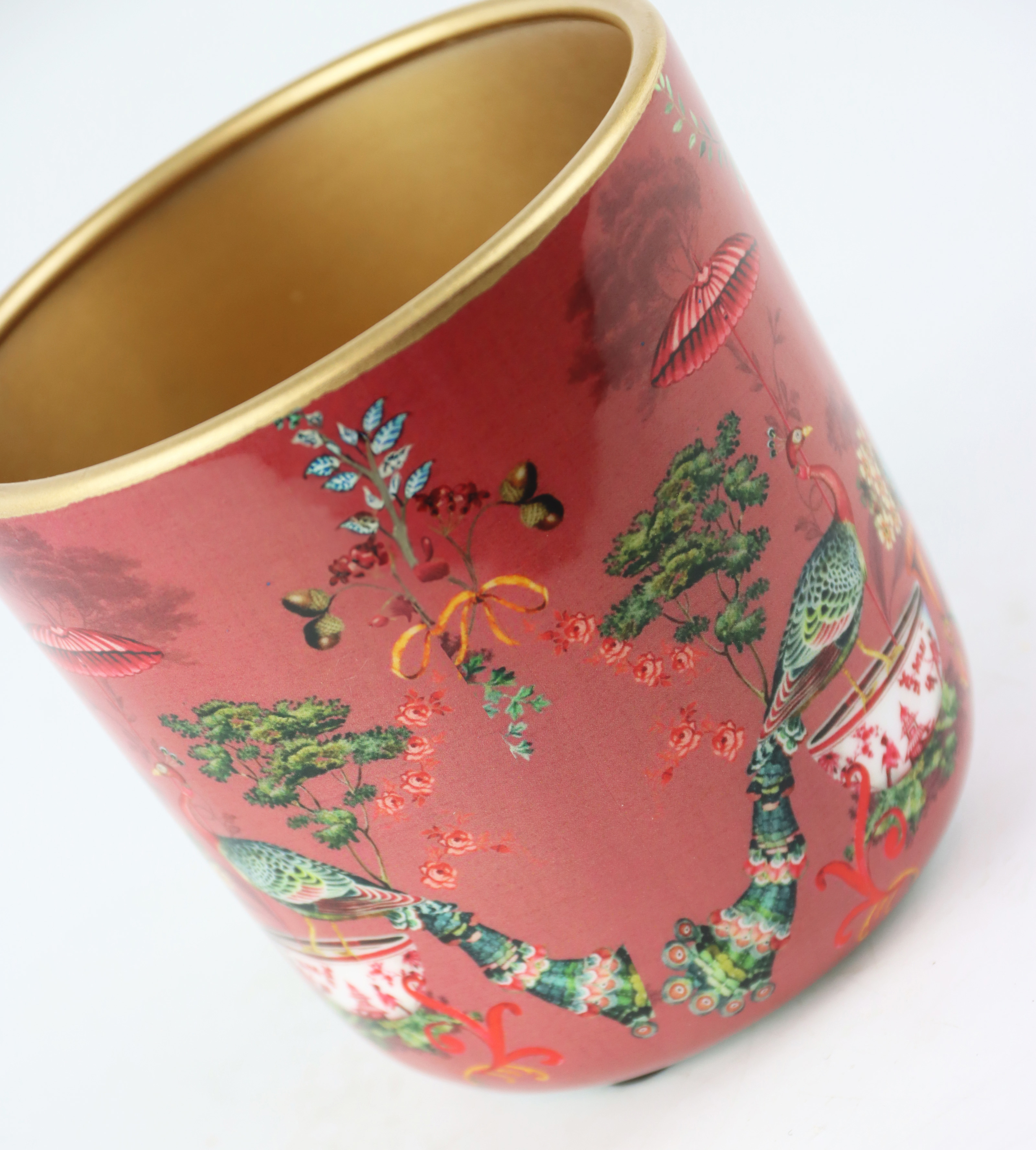 DE**Produktbeschreibung: ÜBERTOPF "ASIAN FAUNA" – Eleganter Pfau in Rot**