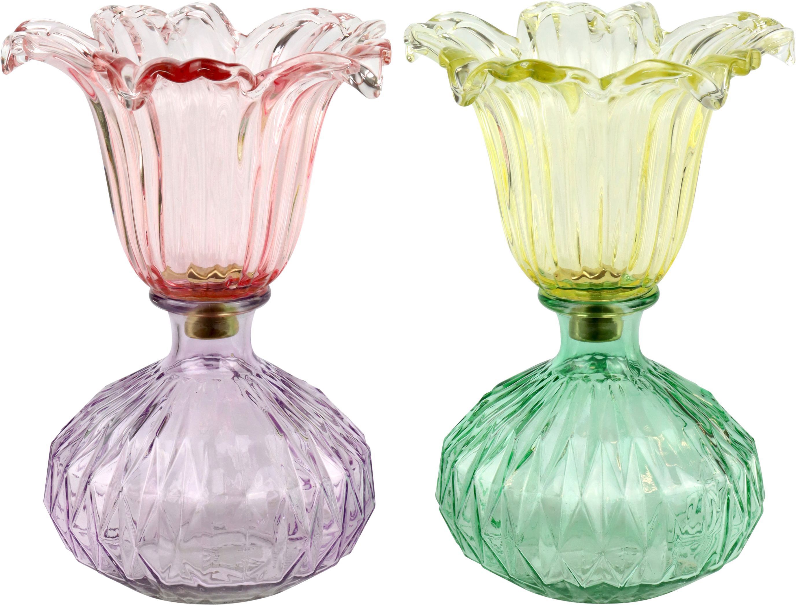 - Zweiteiliges Set aus buntem Glas für eine lebendige Dekoration