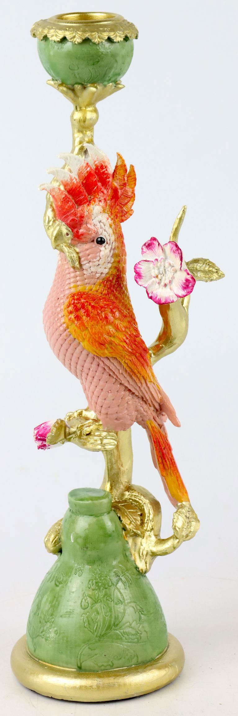Der Leuchter "Crazy Kakadu" kombiniert hochwertigen Keramik- und Polyresin-Materialien mit robustem Metall, um eine stabile und langlebige Dekoration zu bieten. Mit einer Höhe von ca. 26 cm passt der Leuchter perfekt auf jeden Tisch, Regal oder Fensterbank und zieht alle Blicke auf sich. Der in lebhaftem Orange gestaltete verrückte Kakadu versprüht Leichtigkeit und charakterstarke Individualität, die den neuesten Trends der Heimdekoration entspricht.