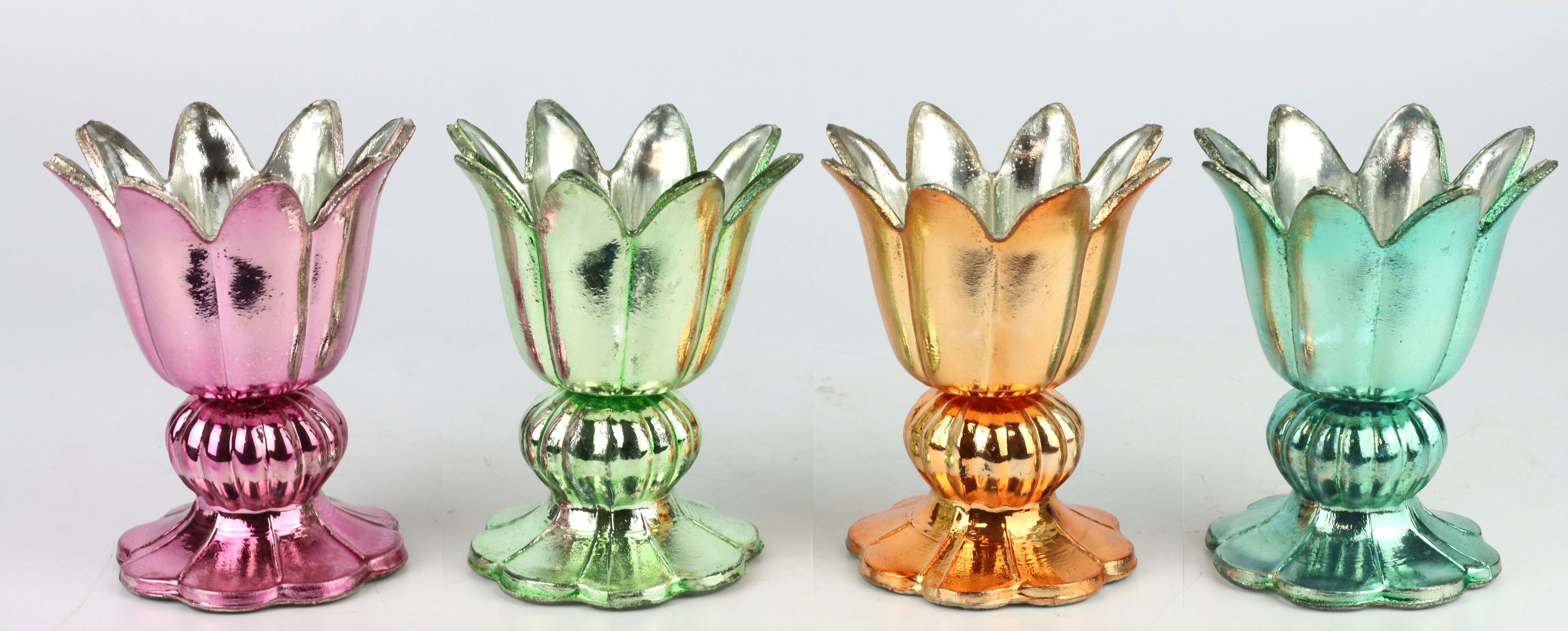 - **Vierteilige Kollektion in Pastellfarben:** Set enthält Windlichter in Rosa, Grün, Blau und Orange.