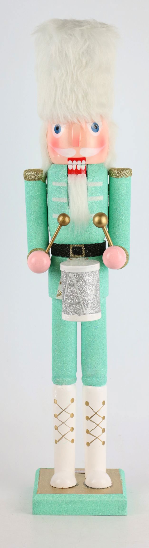 Unser Nussknacker "Holly Jolly" spiegelt die traditionelle Weihnachtsdekoration in neuem, aufregendem Licht wider. Gefertigt aus echtem Holz, verbindet unser Nussknacker eine klassische Herstellungsweise mit innovativem Design. Seine erfrischende mintfarbene Farbgebung, abgerundet durch funkelnde Glitterelemente, verleiht jeder Wohnlage ein einzigartiges, weihnachtliches Flair.