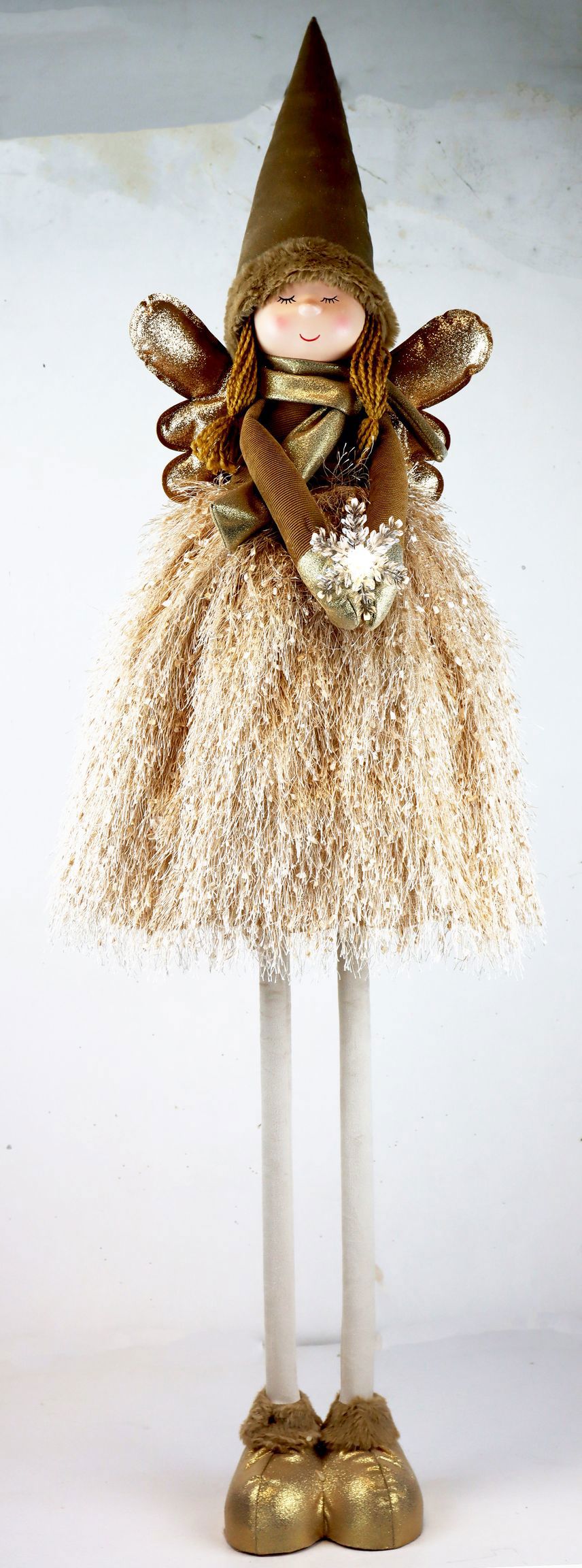 Die LED-Engelfigur "CELESTE" ist mit einer Höhe von ca. 130 cm ein wahres Highlight in jedem Raum. Ihre Ausführung aus hochwertigem Polyester, Kunststoff und Metall verleiht ihr nicht nur eine exklusive Optik, sondern auch eine lange Lebensdauer, die den täglichen Anforderungen des stationären Einzelhandels mühelos standhält. Der subtile Braunton der Figur sorgt für eine warme, einladende Atmosphäre und fügt sich nahtlos in jede Wohn- und Lifestyle-Dekoration ein.