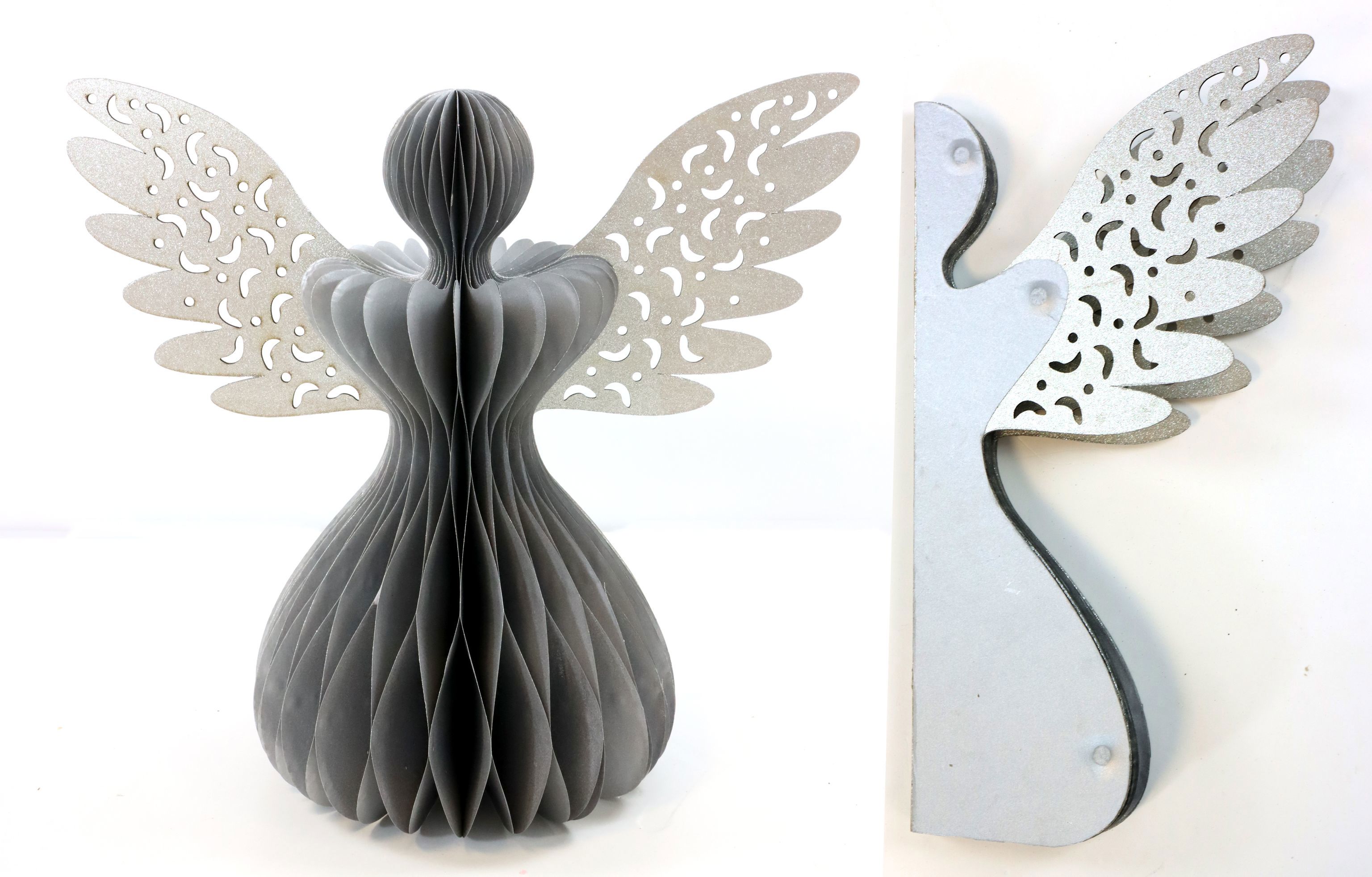 Erleben Sie die festliche Saison mit unserem eleganten Dekoengel "Honeycomb". Als Artikelnummer 9237 in unserem Online-Shop erhältlich, ist dieser faltbare graue Engel mit silbernen Flügeln aus Papier eine exzellente Ergänzung für jederlei Weihnachtsdekoration.