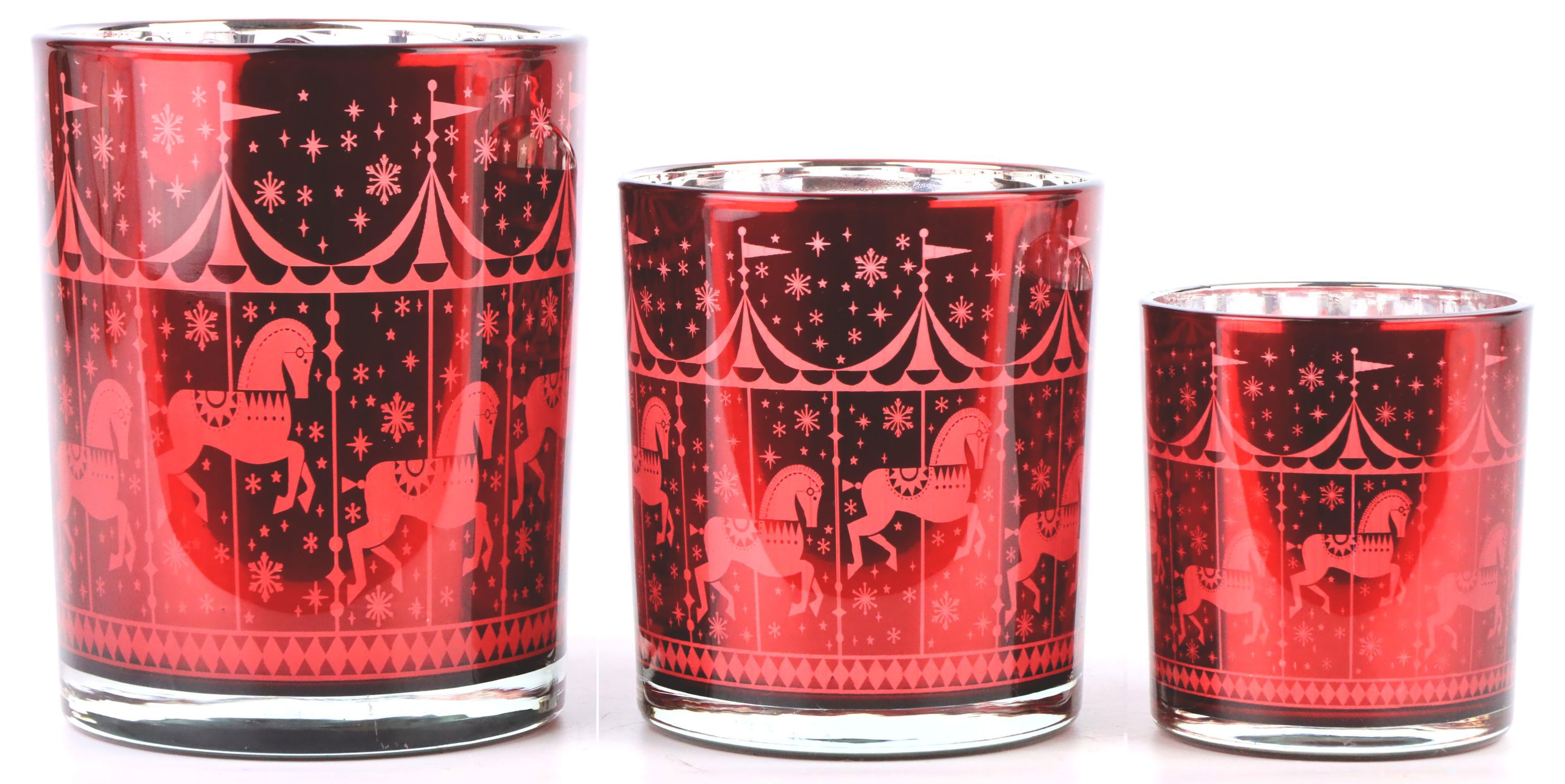 - Dreiteiliges Windlichter-Set mit eindrucksvollem Zirkusmotiv