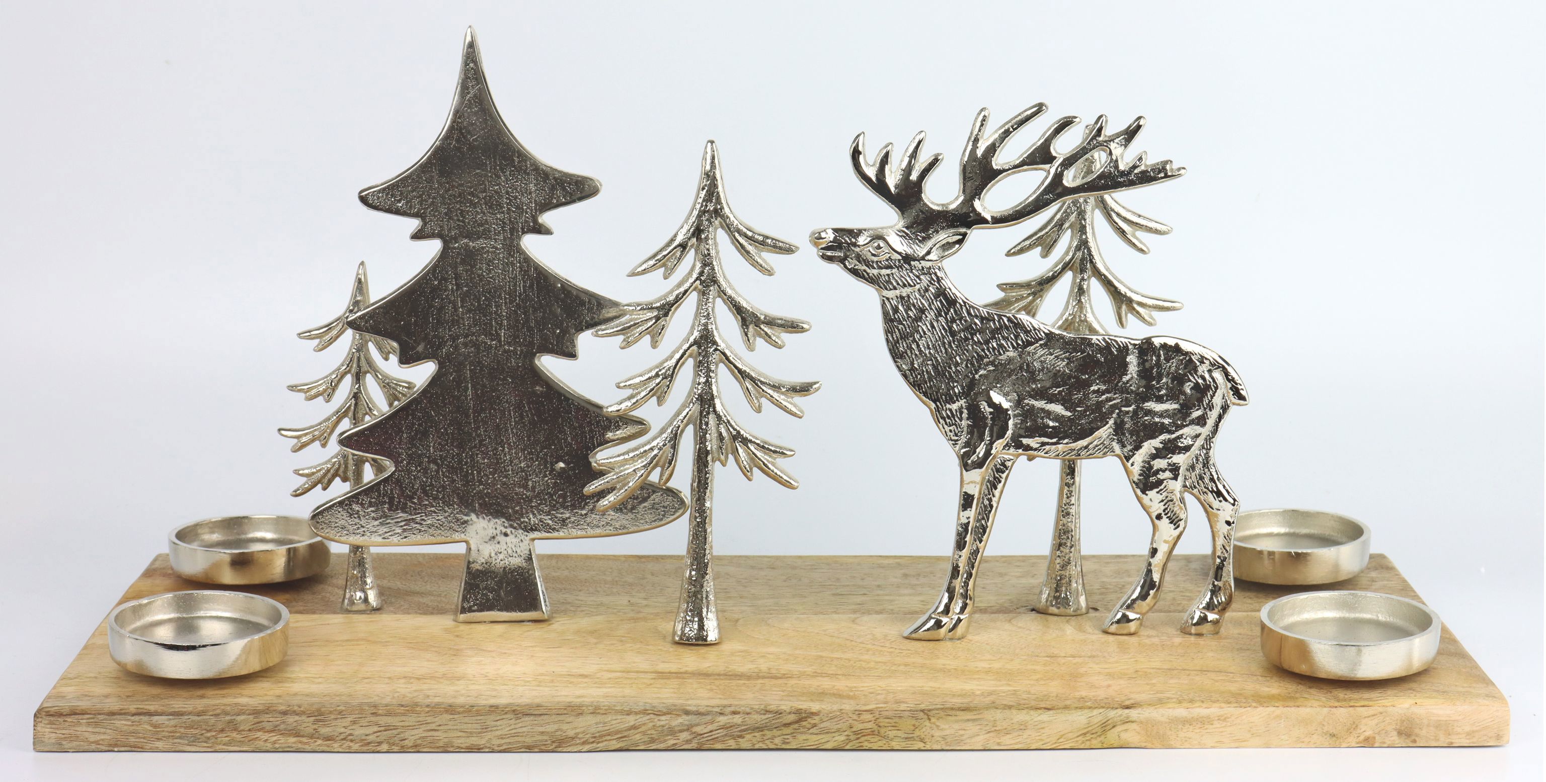 Keywords: Teelichthalter, Weihnachtsdeko, festliche Dekoration, Lifestlye-Produkte, Wohnaccessoire, Deko-Einzelhandel, Winterwald, leuchtendes Objekt, Aluminium-Deko.