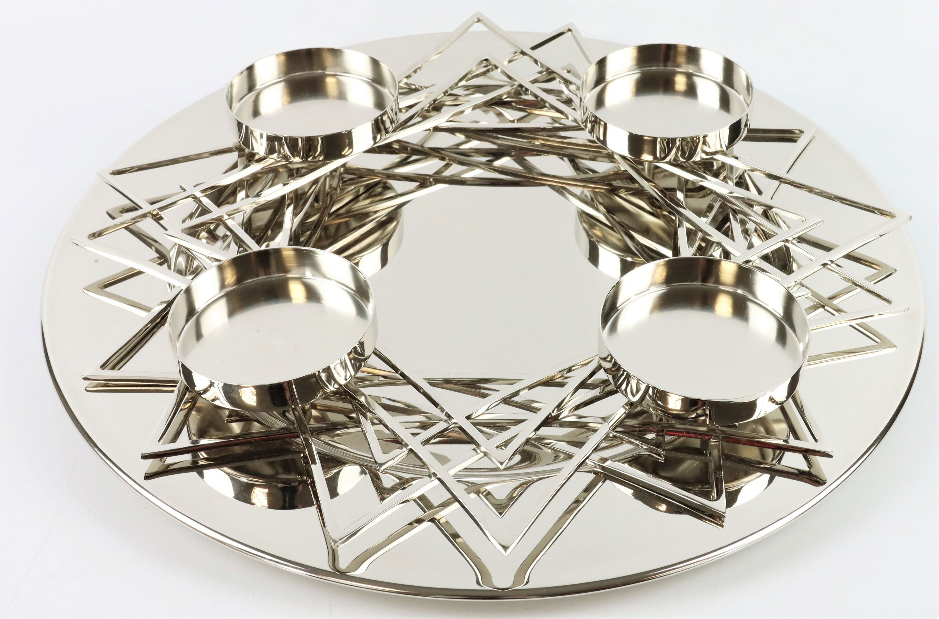 Verkörpern Sie Stil und Geschmack mit unserer Leuchterschale "Empire". Hergestellt aus beständigem Stainless Steel, der eine lange Lebensdauer gewährleistet, und Nickel Plated für einen extra Schimmer, macht dies die "Empire" zur perfekten Wahl für jene, die auf der Suche nach Qualität und Design sind.