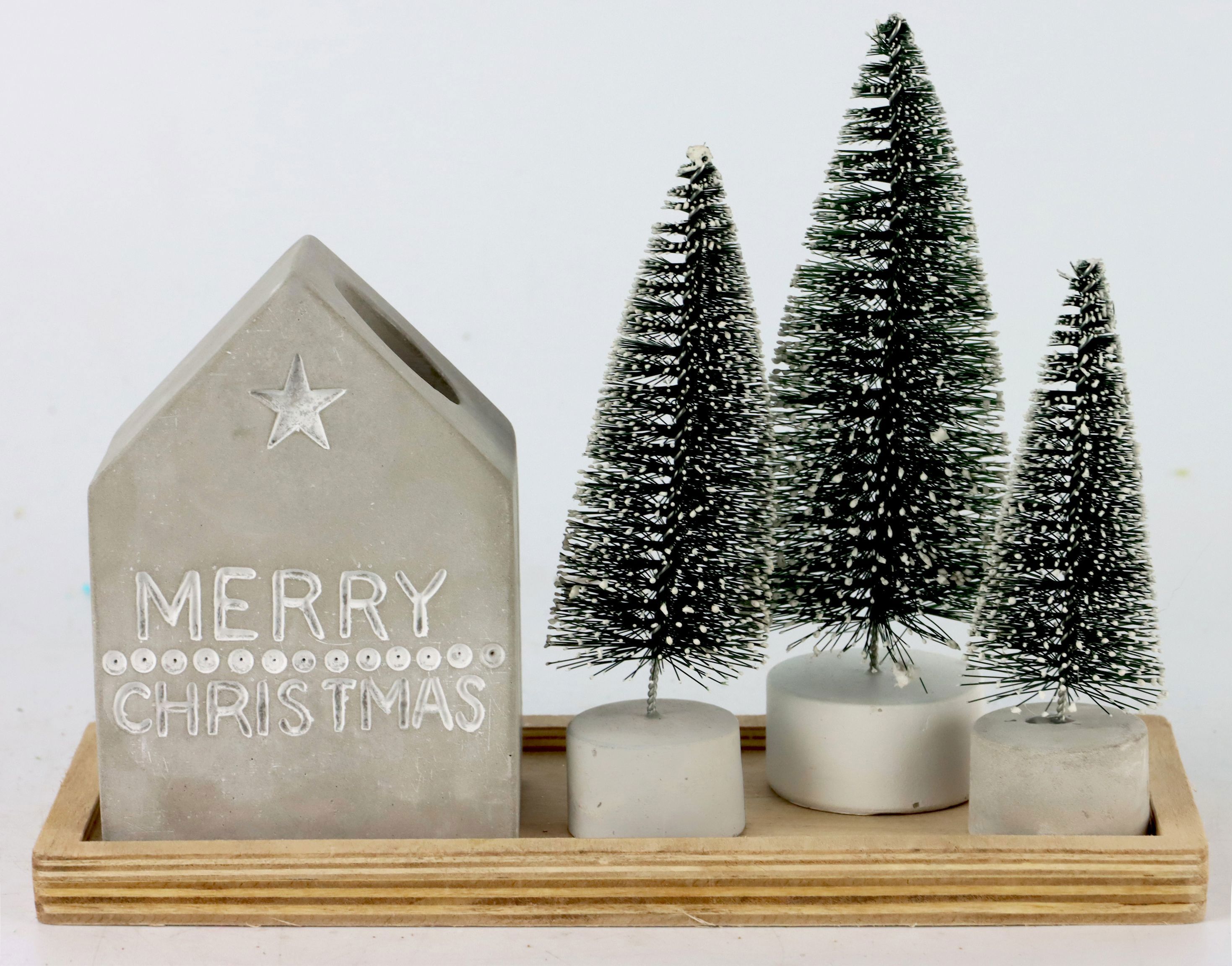 Das WEIHNACHTSENSEMBLE S/5 ist in liebevoller Handarbeit hergestellt und besteht aus qualitativen Zement-, Kunststoff- und Holzelementen. Die dezente Größe von ca. 20cm macht jede Komponente zu einem idealen Dekorationshighlight für den festlich gedeckten Tisch, die festliche Anrichte oder für den Empfangsbereich Ihrer Einzelhandelsgeschäfte.