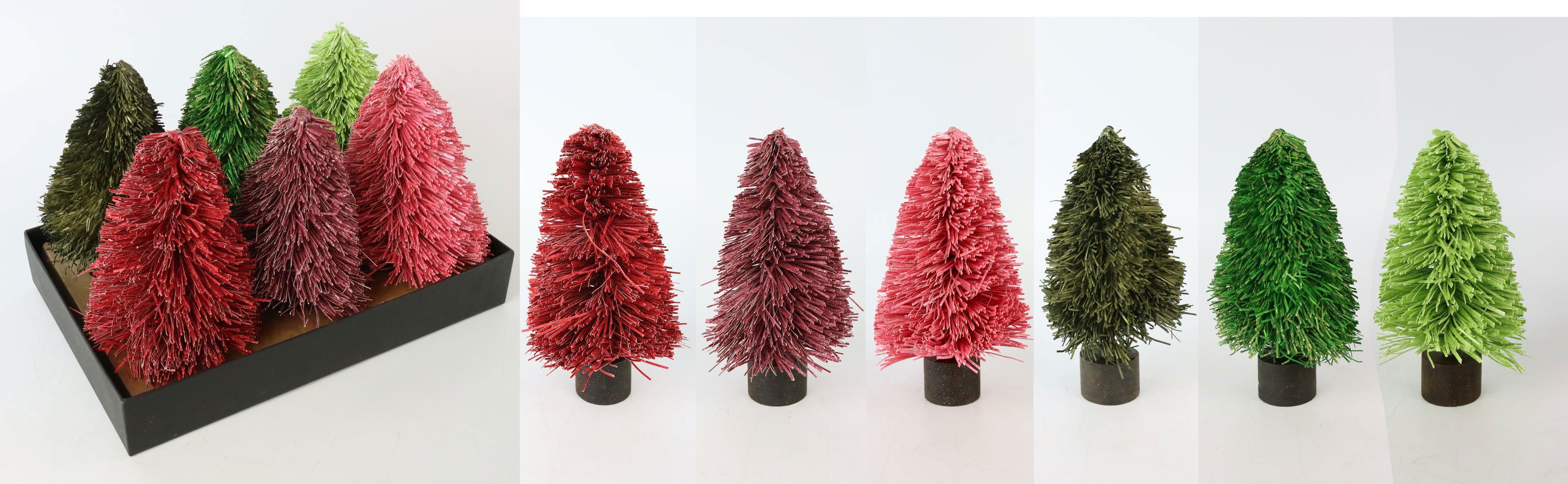 Entdecken Sie unser einzigartiges BÄUMEDISPLAY "FRILL" S/6, das Ihrem stationären Einzelhandel im Bereich Wohnen und Lifestyle eine festliche Note verleiht. Diese sorgfältig gestaltete Kollektion besteht aus sechs dekorativen Bäumen in auffälligen Rot- und Grüntönen, die perfekt zur Weihnachtszeit passen. Die Bäume sind aus hochwertigem Papier und Holz gefertigt und bieten eine langlebige Lösung für Ihre festlichen Dekorationsbedürfnisse.