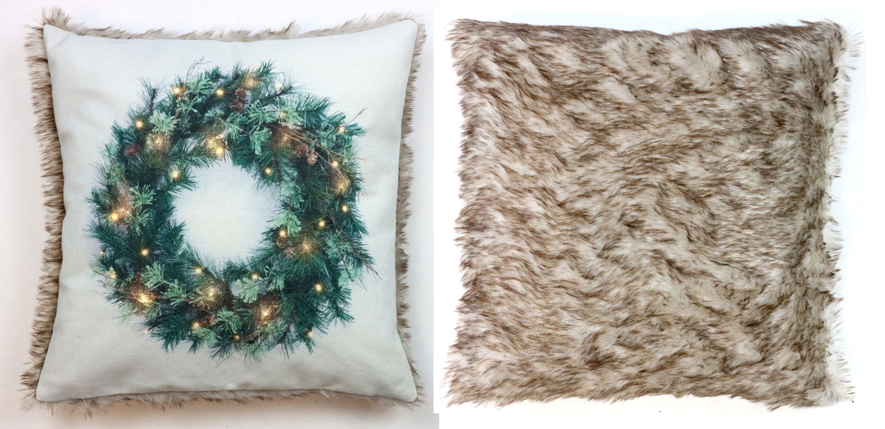 Schlüsselwörter: LED Kranz, Kissenhülle, Weihnachtsdekor, festliche Wohnaccessoires, Geschenkideen, wohnen und Lifestyle, Polyester Kissenhülle, Faux Fur, batteriebetriebene Beleuchtung, weihnachtlicher Lifestyle.