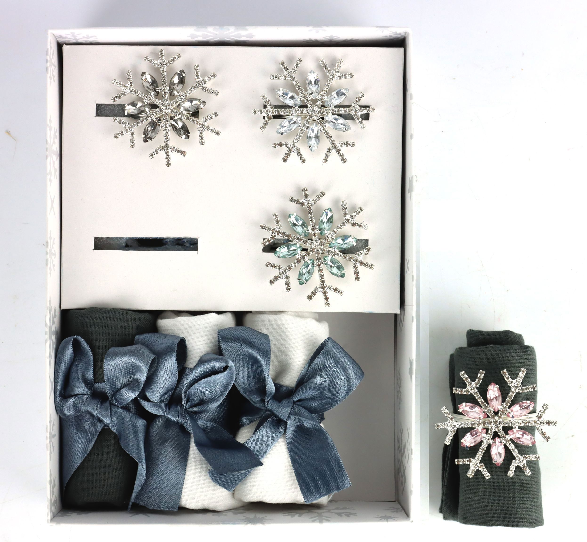 - Bezaubernde Serviettenringe in Schneeflockenform mit funkelnden Strassteinen