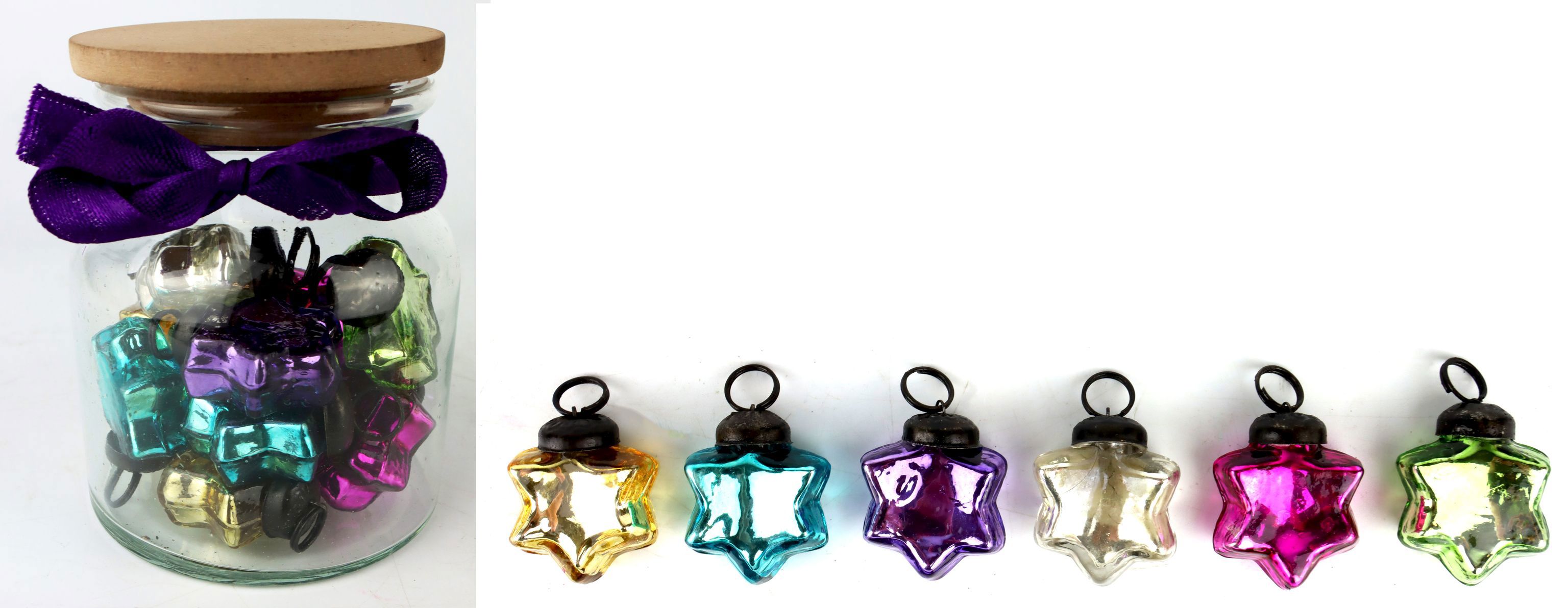 - 19 elegante Sternanhänger in einer dekorativen Glasdose