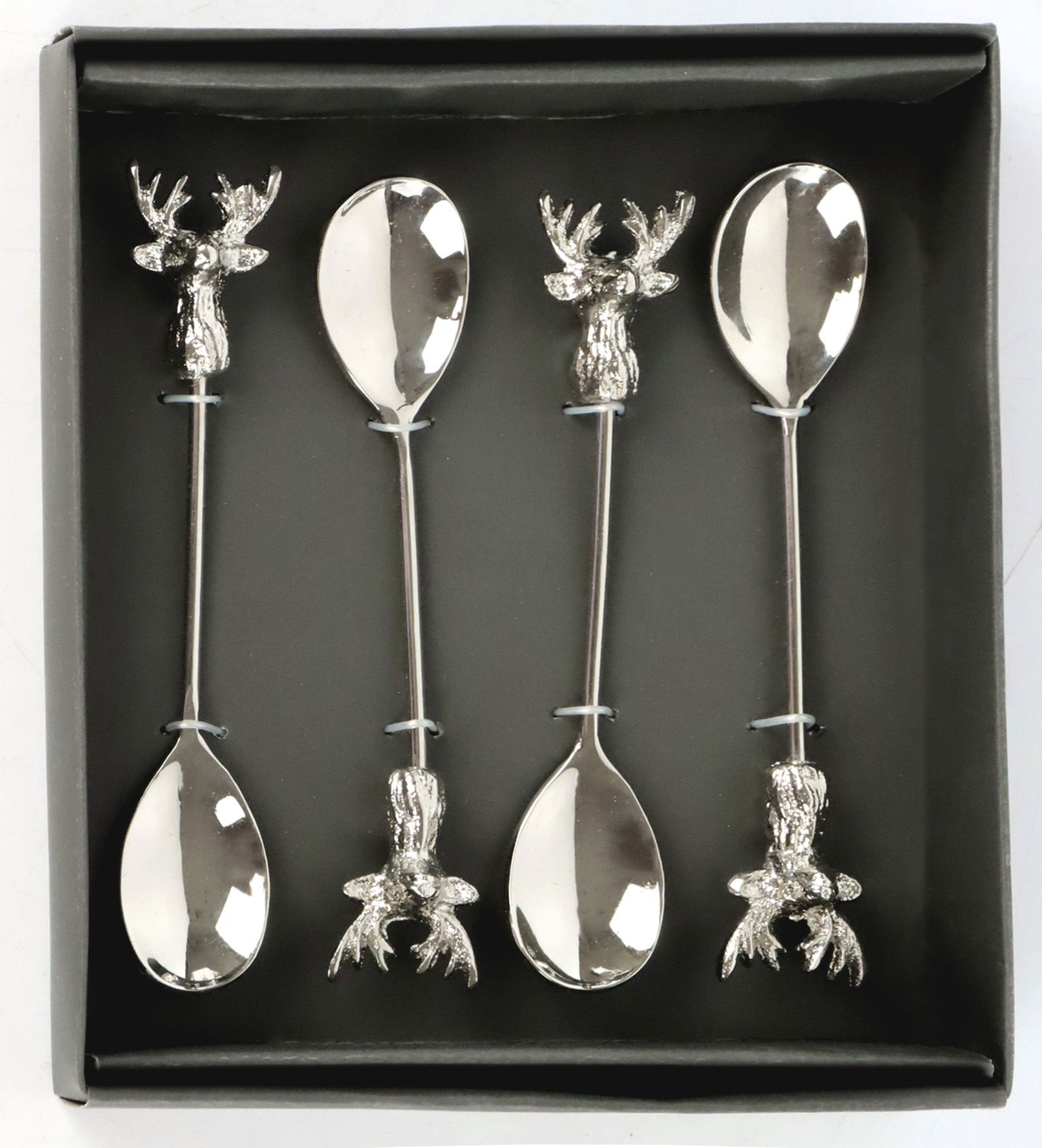 Keywords: Löffel-Set, Hirsch, Nickel, Silber-Löffel, hochwertiges Besteck, Tischdeko, B2B-Shop, Produktpräsentation, Saisonartikel, Geschenkidee, Wohnambiente, Herbst/Winter.