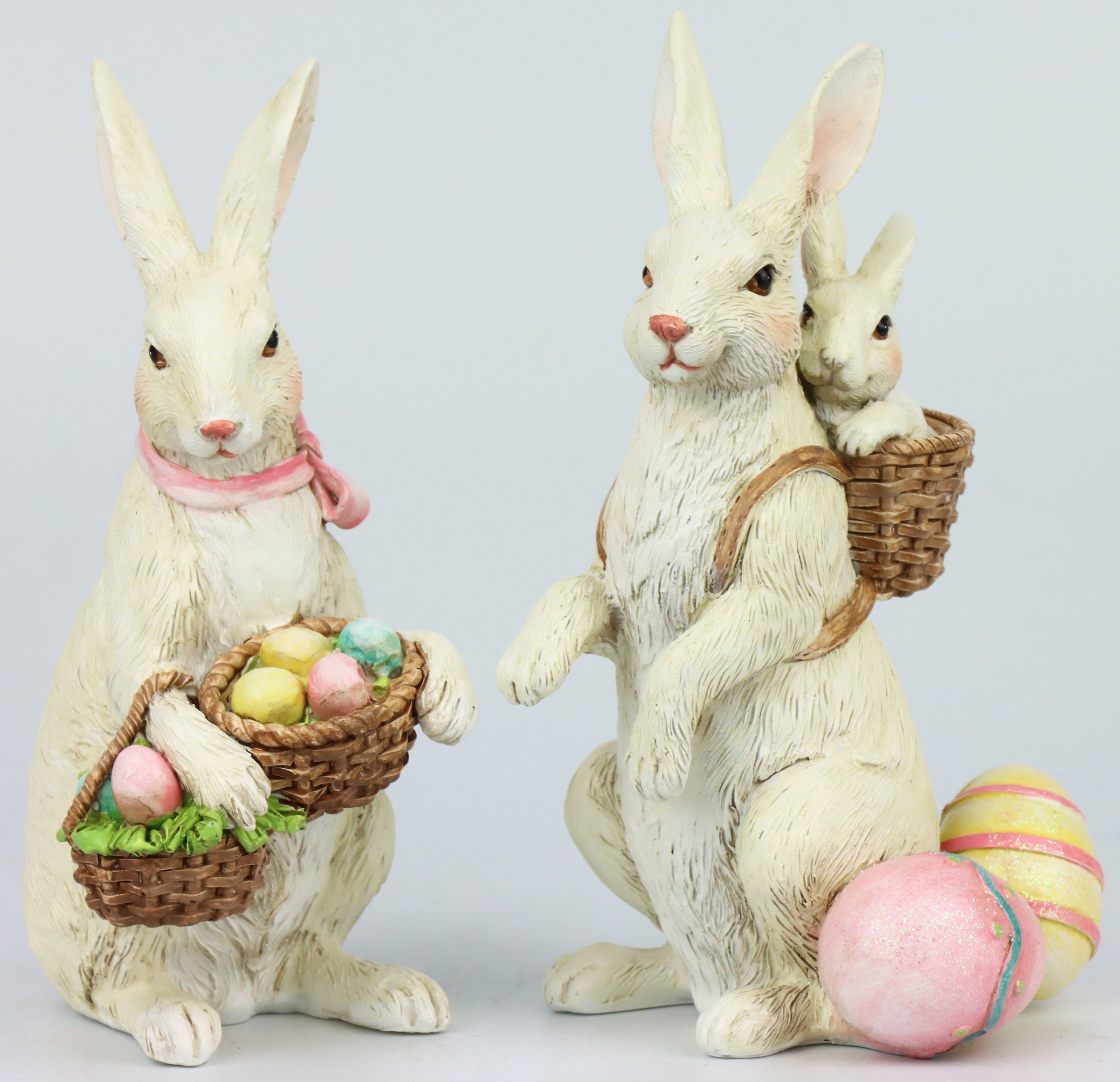 Die Hasenfiguren überzeugen durch ihr detailliertes Design und die ansprechende Pastellfarbpalette, die in dieser Saison im Trend liegt. Durch die Verwendung von Polyresin sind die Figuren äußerst robust und gleichzeitig filigran in der Gestaltung, was sie zu einem langlebigen Dekoelement macht. Polyresin, ein Material, das Kunstharz mit Steinmehl kombiniert, sorgt nicht nur für die Langlebigkeit der Figuren, sondern auch für die Möglichkeit, feinste Details herauszuarbeiten, die Ihren Kunden das gewisse Extra bieten.