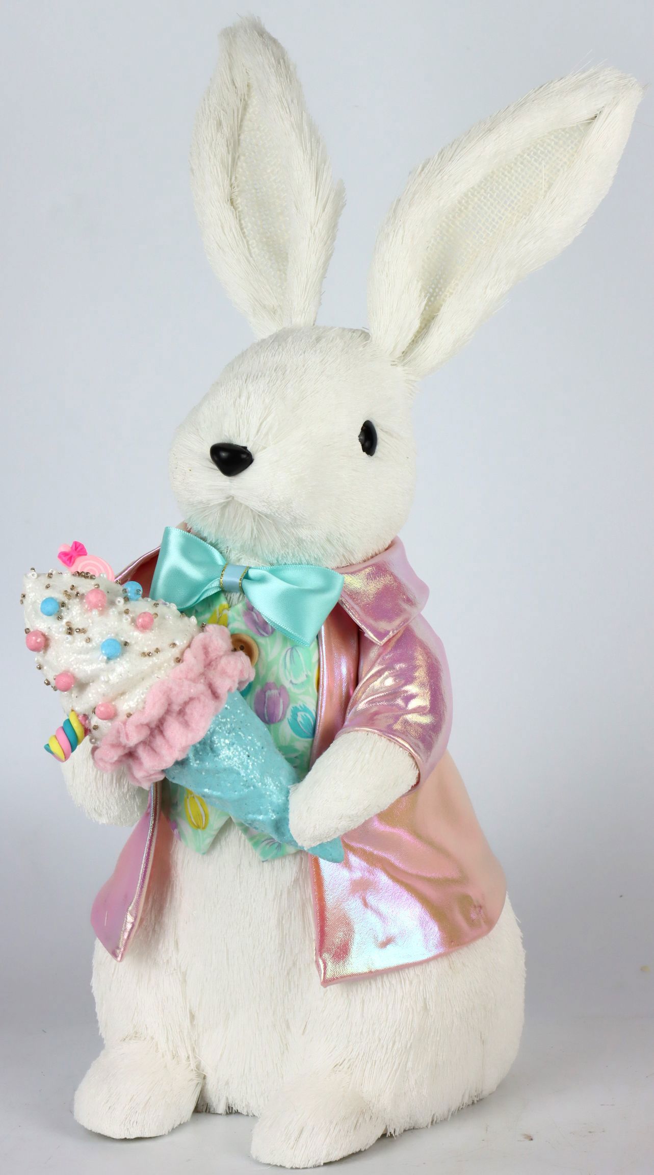 Erleben Sie die Vielfalt und den innovativen Charme unserer Frühlingskollektion mit dem bezaubernden Hase "Easter Candy". Speziell für den stationären Einzelhandel im Bereich Wohnen und Lifestyle entworfen, ist dieser dekorative Hase das ideale saisonale Highlight für Ihre Schaufenster und Verkaufsflächen. Mit einer raffinierten Kombination aus Styropor, Kunststoff, Polyester und Baumwolle vereint dieses Kunstwerk Langlebigkeit und ansprechende Ästhetik, um Ihre Kunden zu begeistern.