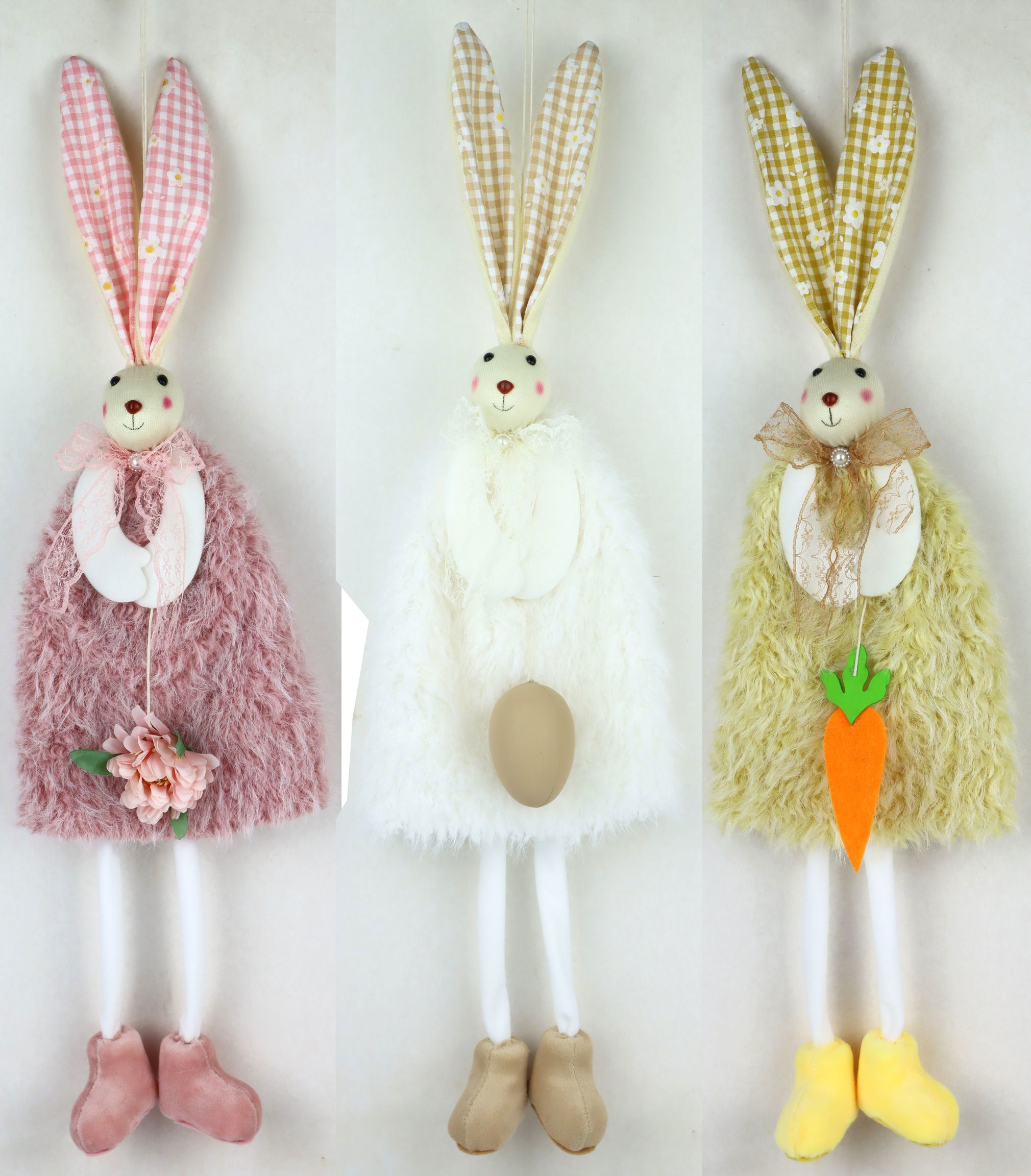 Mit einer großzügigen Höhe von ca. 52 cm sind die Hasenfiguren ideal proportioniert, um in verschiedensten Präsentationen, ob auf Tischen, Regalen oder in Vitrinen, einen echten Blickfang zu erzielen. Ihre natürliche Gestaltung und die pastellfarbenen Akzente strahlen in jeder Umgebung eine gemütliche und fröhliche Osterstimmung aus, die Ihre Kunden begeistern wird.
