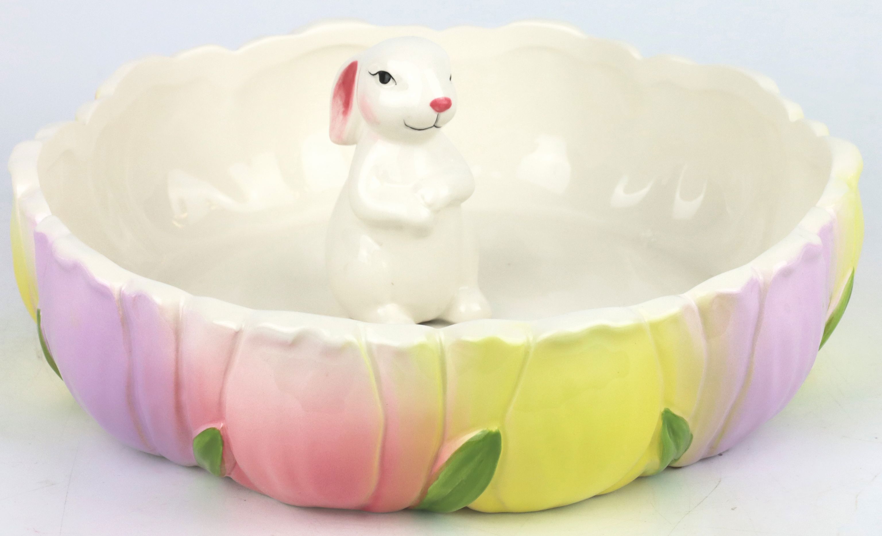 Entdecken Sie die perfekte Osterdekoration für Ihre Verkaufsfläche: die bezaubernde Schale "FLOWER BUNNY". Diese einzigartige Keramikschale mit einem Durchmesser von 25 cm wurde speziell für die Frühlings- und Ostertage entworfen. Die handbemalte Schale zeigt ein liebevolles Hasenmotiv, das Ihre Kunden begeistern wird.