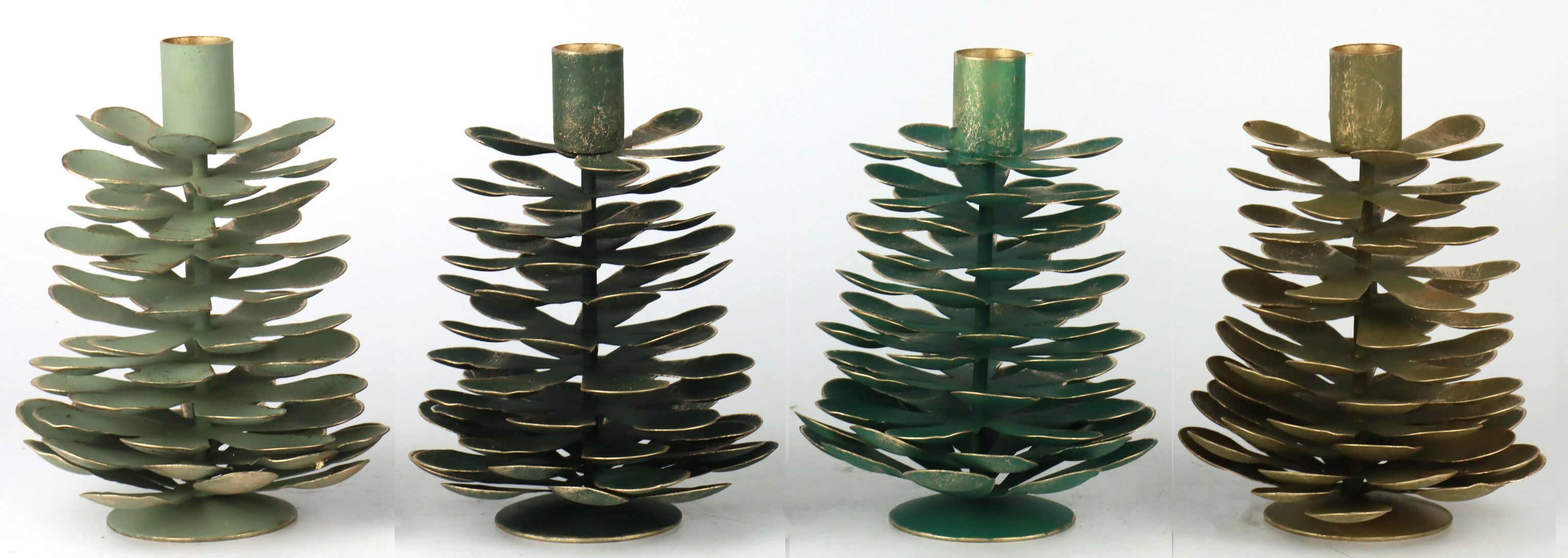 **Produktbeschreibung für LEUCHTER "PINE" S/4 - Vierteiliges Leuchterset in Grüntönen für den Herbst und Winter**
