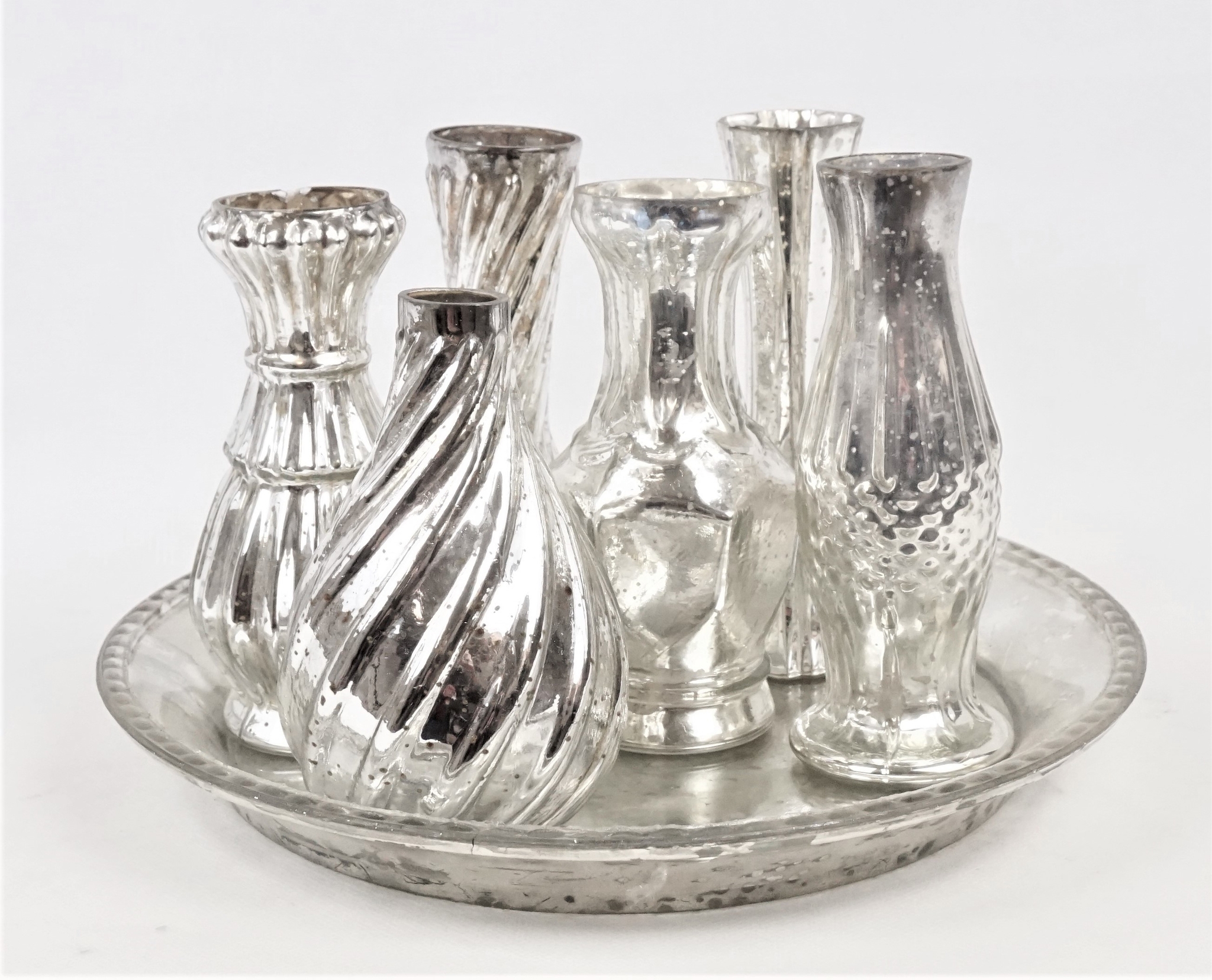 The timeless elegance of this vase ensemble makes it a perennial favourite, regardless of seasonal trends or special occasions. Each vase has a unique shape and size, yet they come together harmoniously to form a coherent whole that will enhance the modern interior while adding a sense of sophistication. The silver tray that presents the vases emphasises the luxurious appearance and provides a stable base for displaying your most beautiful floral arrangements.