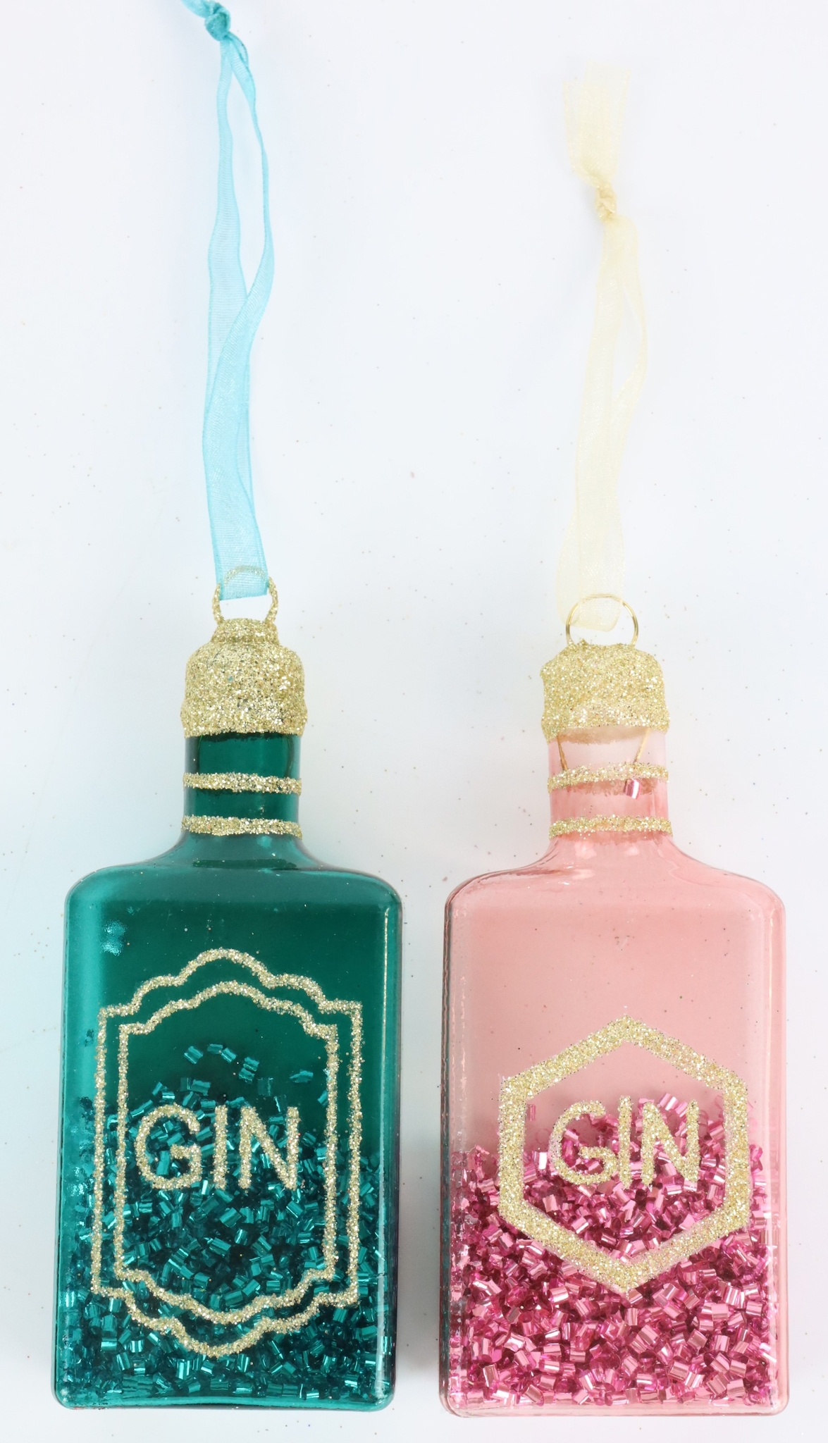 SEO keywords: glass ornaments "Gin", exclusive Christmas tree decorations, home and lifestyle, elegant design, high-quality glass products, festive decorative elements, robust Christmas decorations.