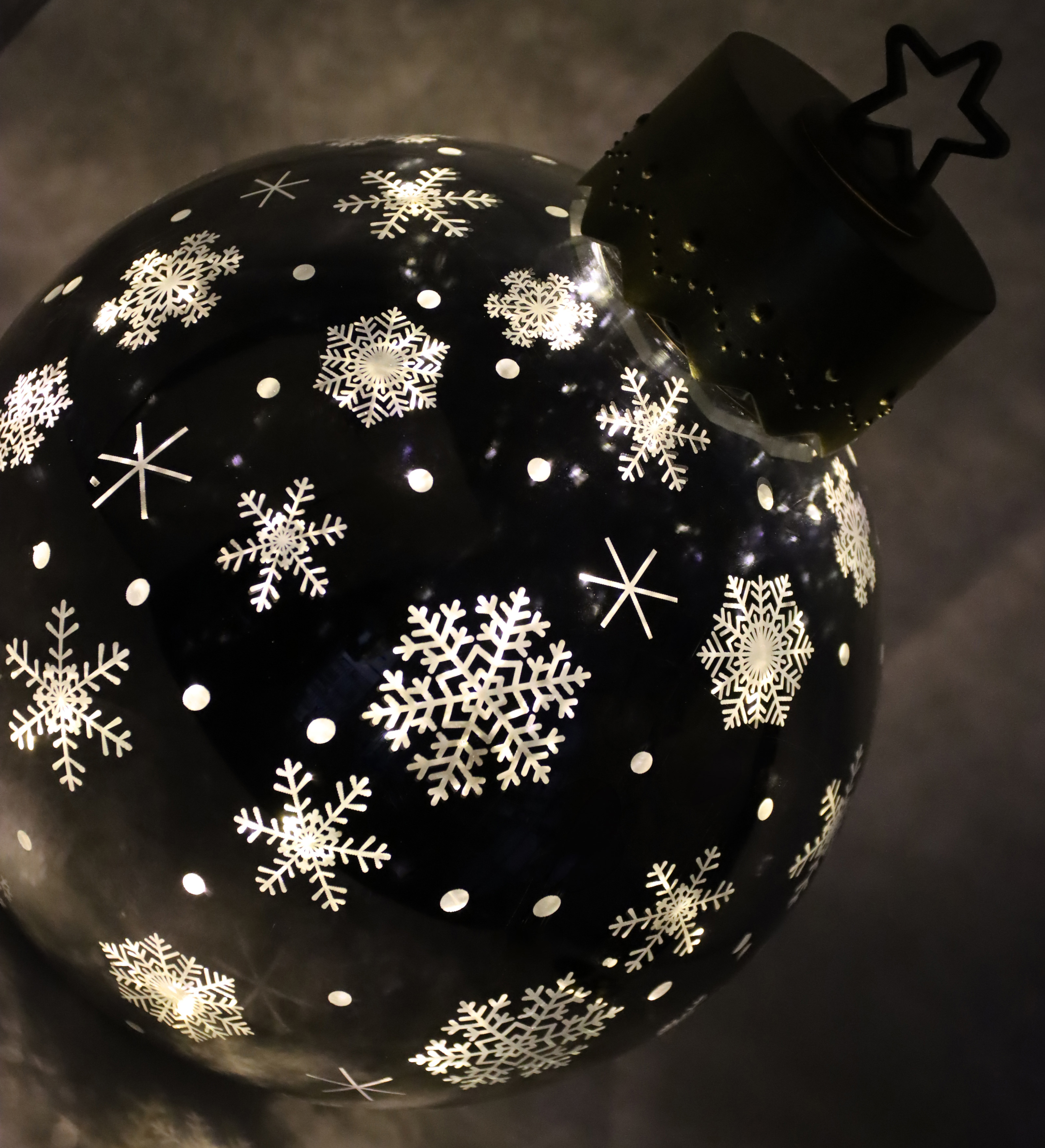 - High-quality LED illuminated globe with snowflake motif