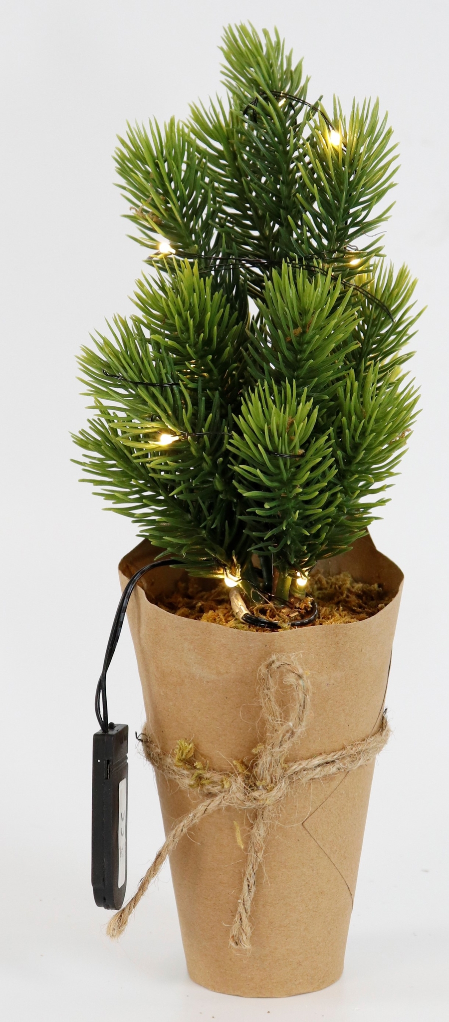 This 27 cm high LED tree named "Frozen" sets the scene and is always an impressive eye-catcher during the festive season. Embedded in a paper pot made of robust plastic, paper and jute, the tree remains stable and is easy to handle.
