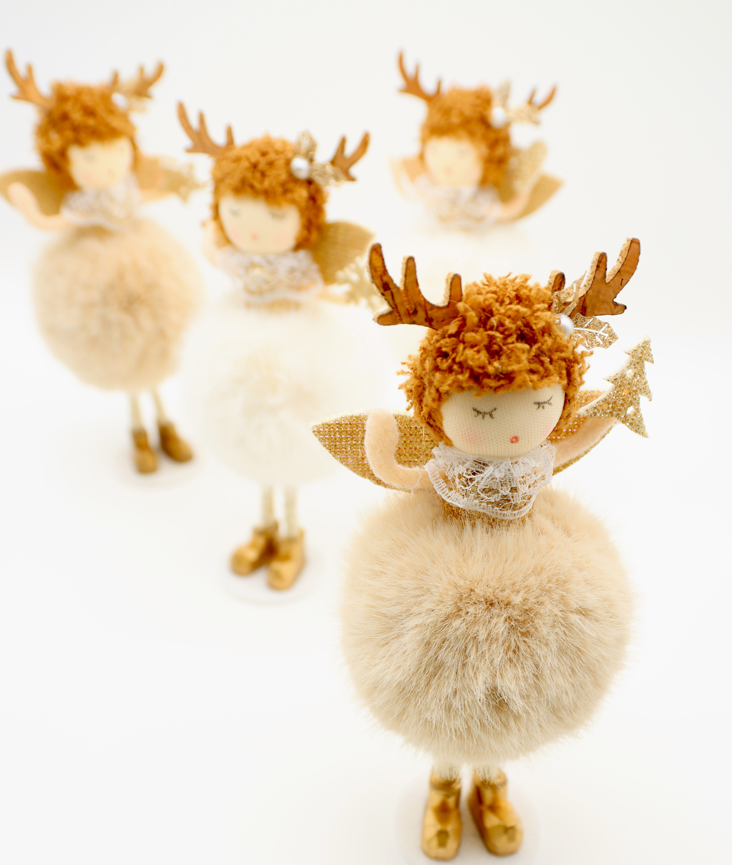 Immerse yourself in the magical world of Christmas with our exclusive "Fluffy Grace" angel set. This unique set, consisting of four enchanting angels, brings an inimitable feel-good atmosphere to your customers' interiors and adds a festive touch to any living space. The angels are designed in an elegant yet subtle colour scheme of beige and cream - ideal to shine in any interior style and create a harmonious Christmas decoration.