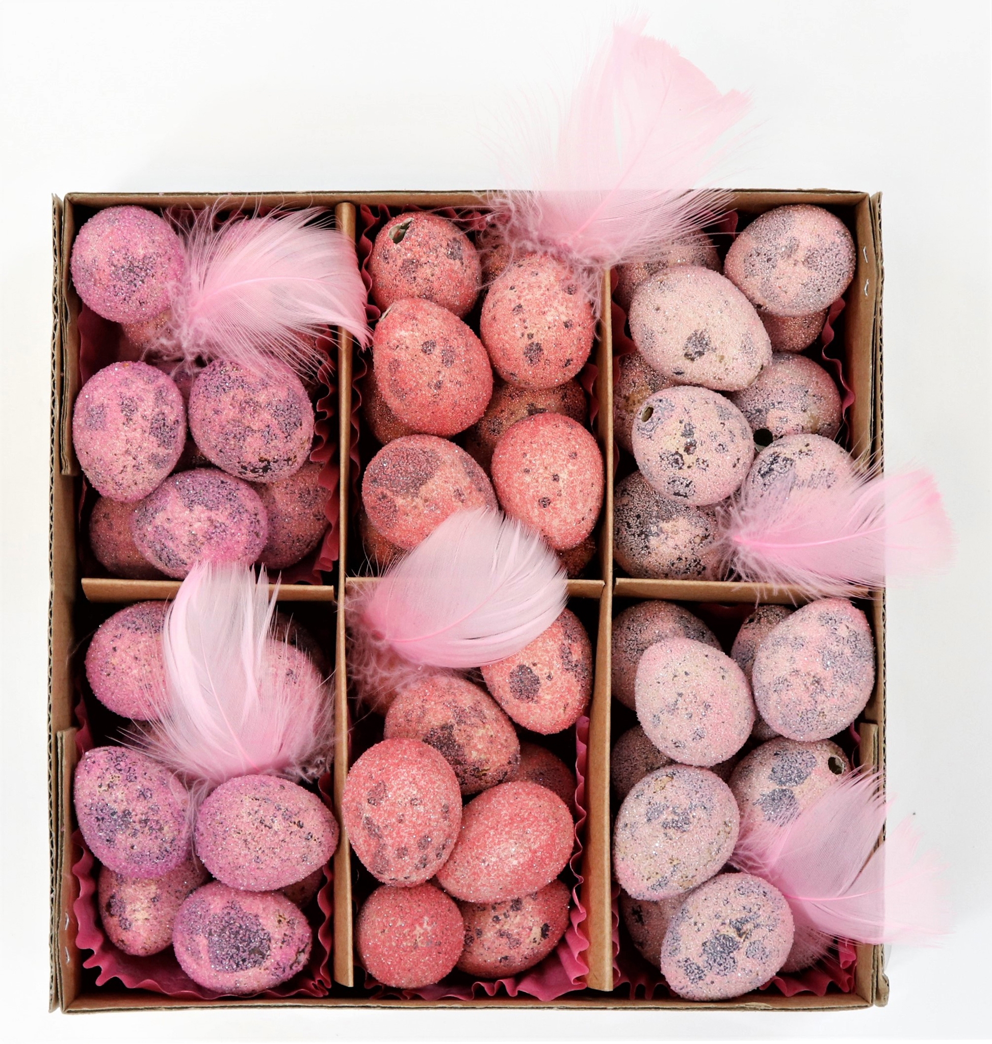 - 60 real quail eggs in a delicate pink colour, ideal for Easter and spring decorations.