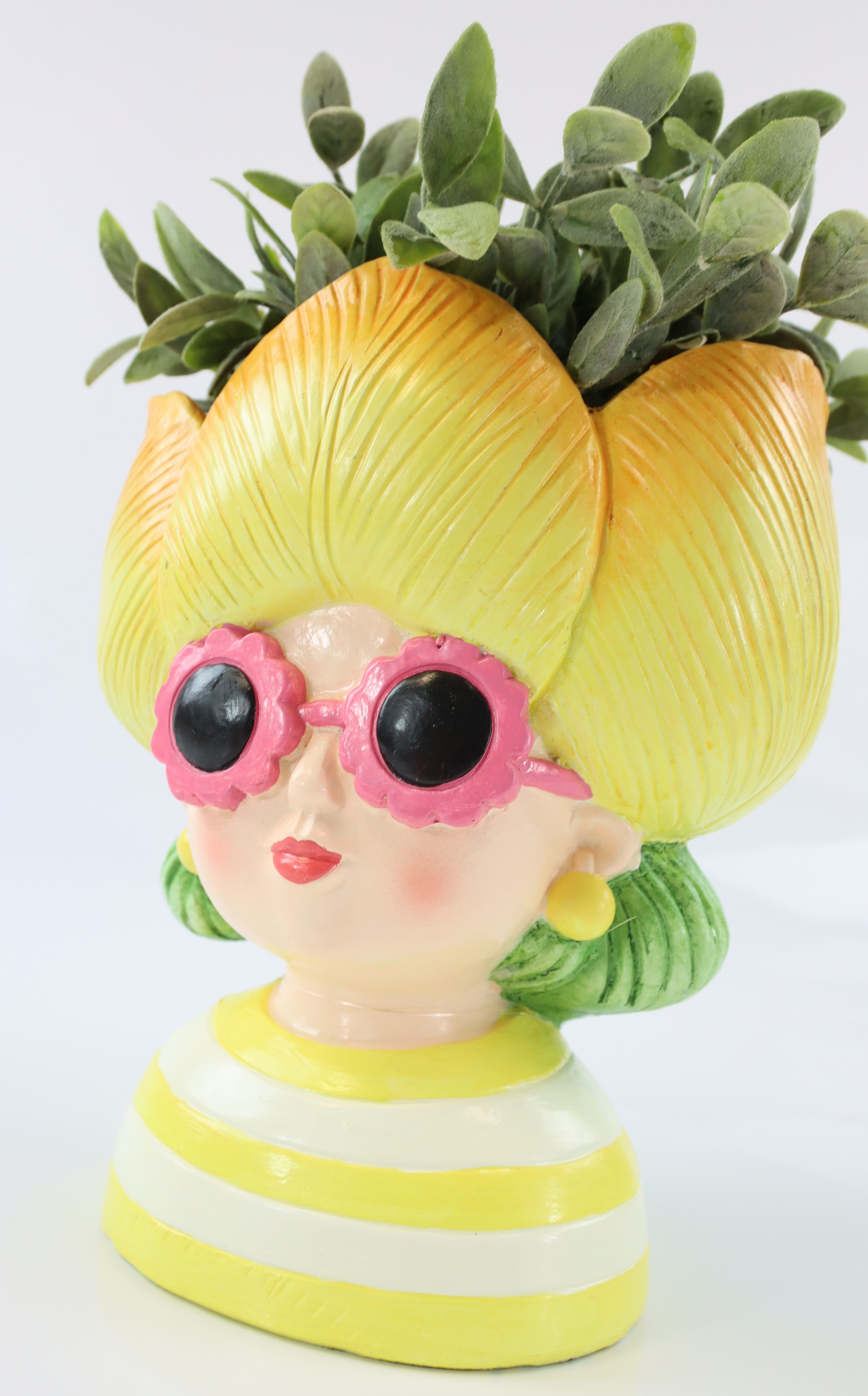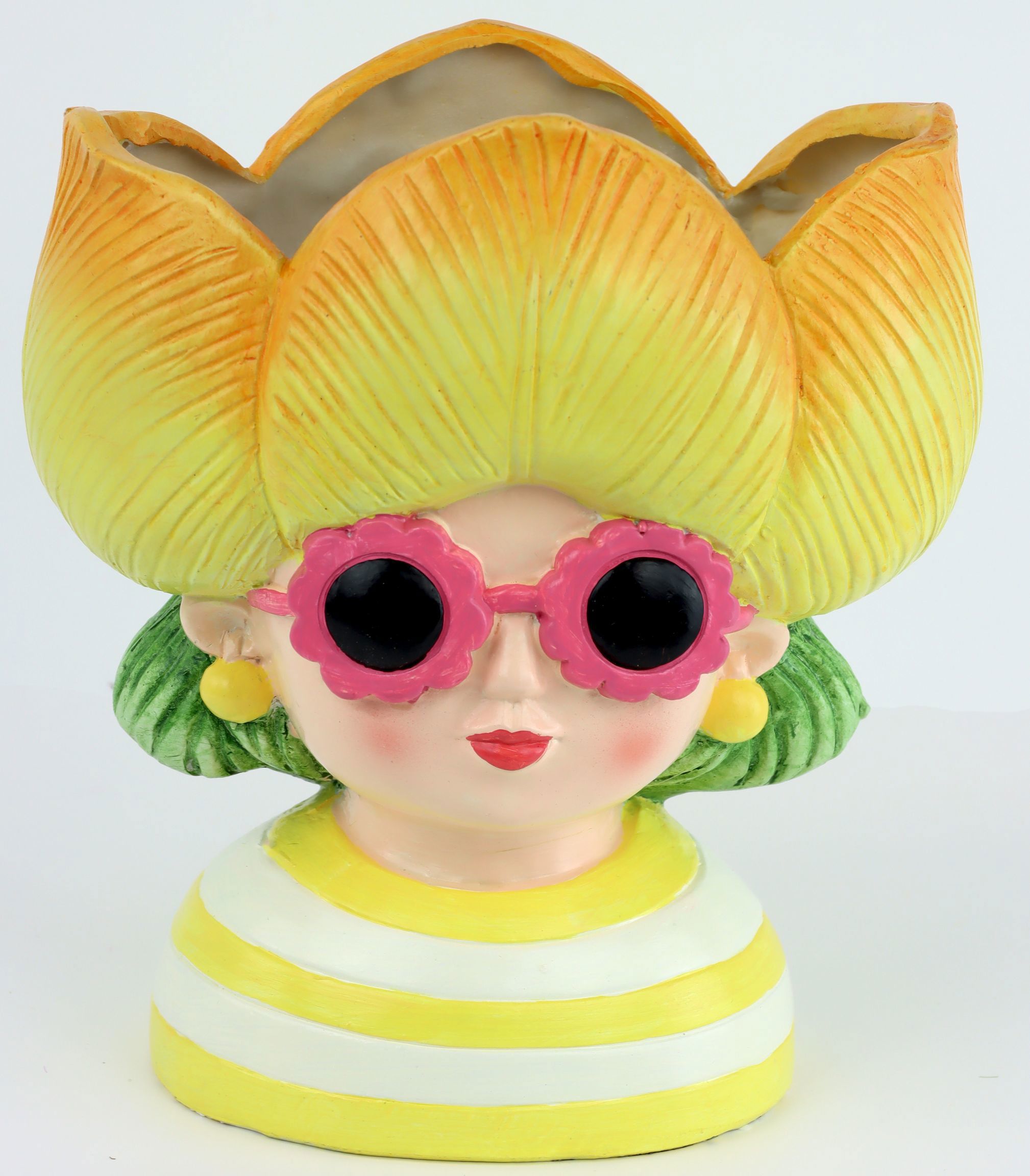 Descubra el exclusivo objeto vegetal "Tulip Girl", que añadirá un toque fresco y moderno a su papelería en el sector del hogar y el estilo de vida. Este objeto vegetal especial cautiva con su artística cabeza femenina, decorada con una graciosa flor amarilla. Con una altura aproximada de 22 cm, "Tulip Girl" es ideal para decorar salones, zonas de entrada o escaparates y garantiza atraer la atención de todos.