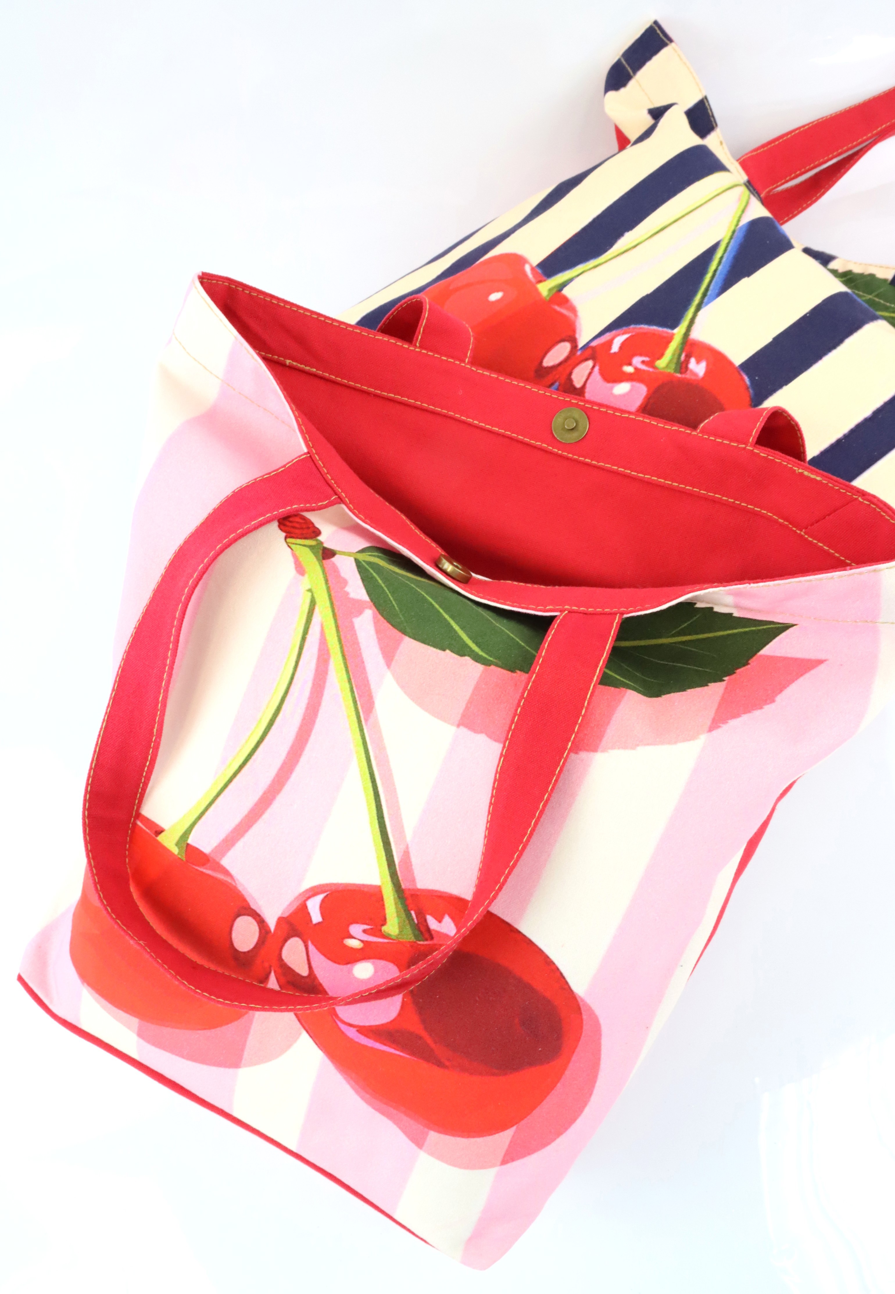 Sumérjase en la primavera con nuestro exclusivo SHOPPER "CHERRY CHARM" S/2, su compañero ideal para ir de compras con estilo y hacer excursiones primaverales. Este juego de 2 piezas fabricado en lona resistente aporta colores frescos y funcionalidad al día a día de sus clientes en el comercio estacionario. Los juguetones diseños de cerezas combinados con las delicadas rayas en blanco, rosa y azul crean una mezcla perfecta de elegancia y ligereza única en el mundo de la vida y el estilo de vida.